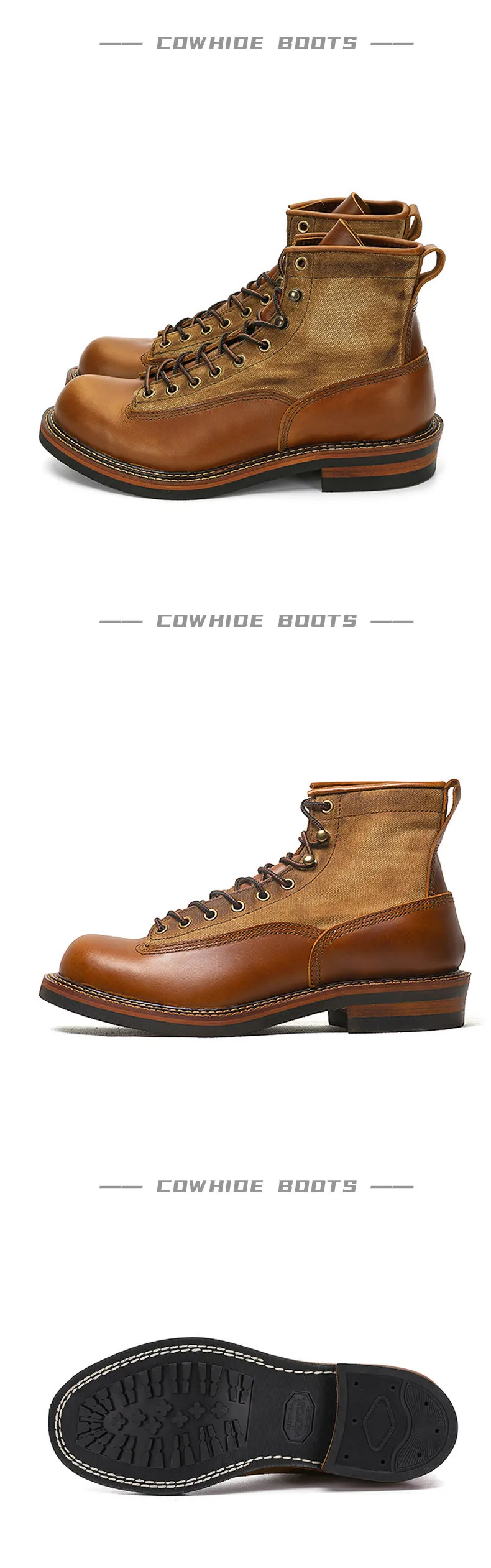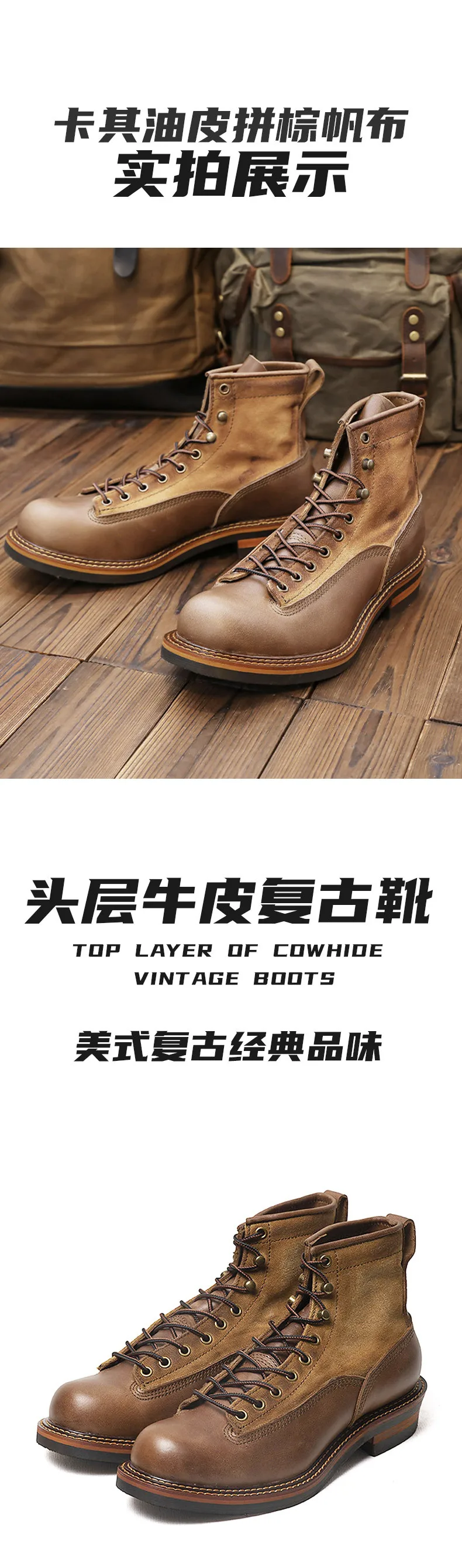 Retro Mens Motorcycle Boots Genuine Cowhide Leather Motorbike Riding Boots Vintage Hight-Top Moto Boots Motocross Ankle Shoes