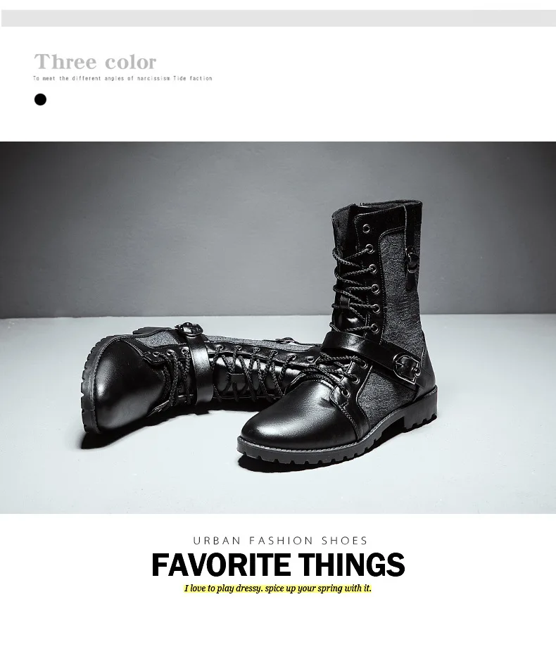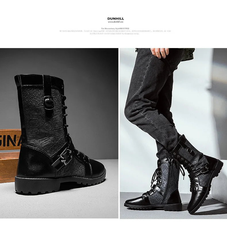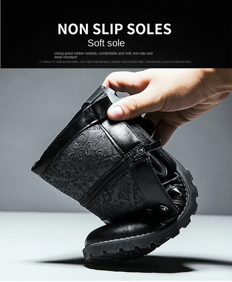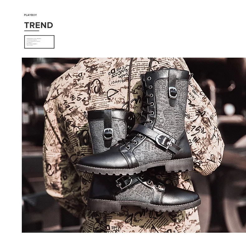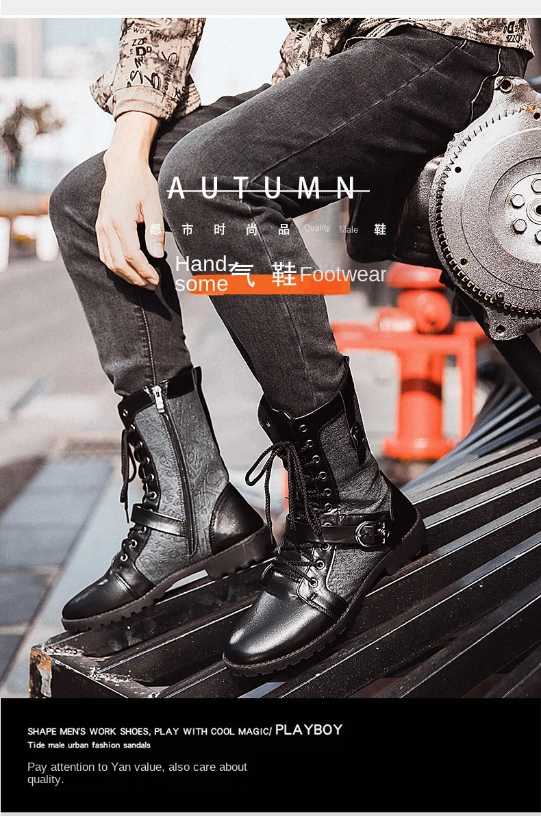 Retro Mid-Carf Punk Boots Winter Men's Plus Velvet Motorcycle Boots All-match Tooling Shoes Denim Mid-high Boots Men botas mujer