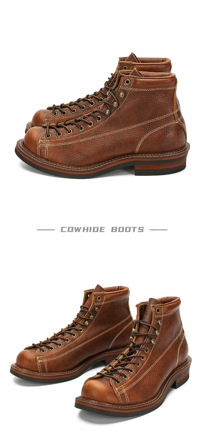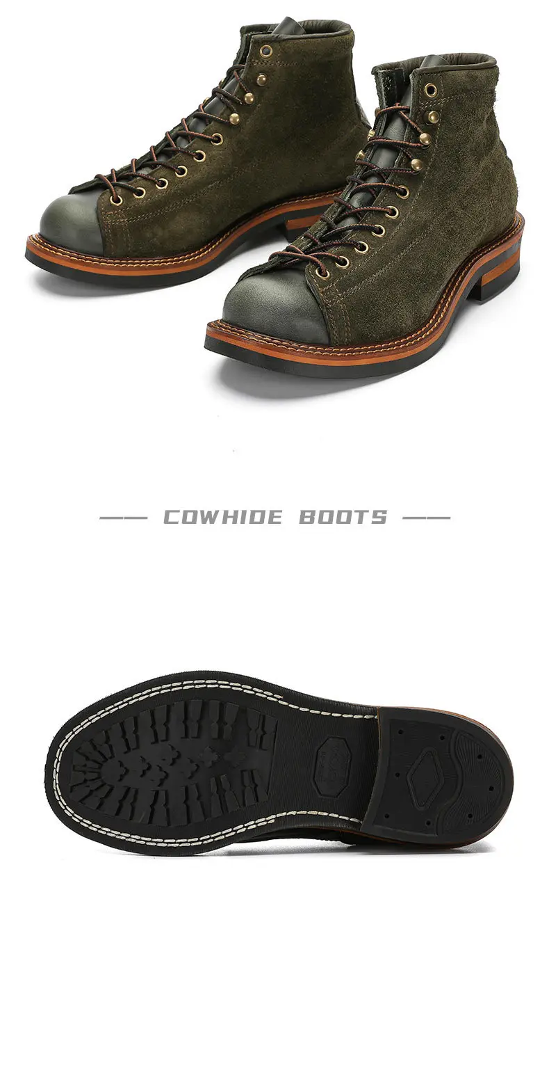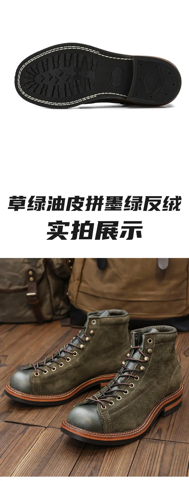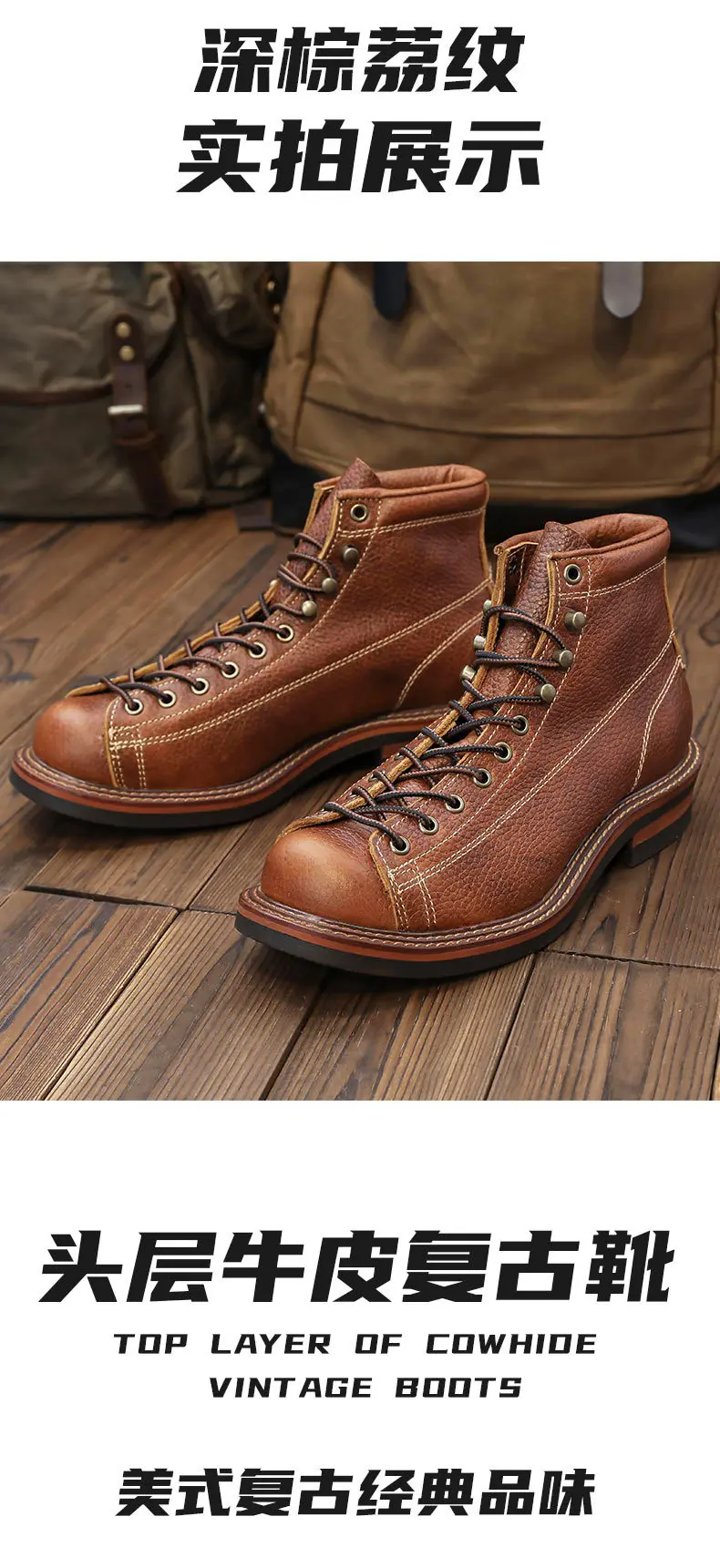 Retro Motorcycle Boots Men Cowhide Genuine Leather Durable Hight-Top Motorbike Boots High Quality Moto Rider Ankle Boots 35-44