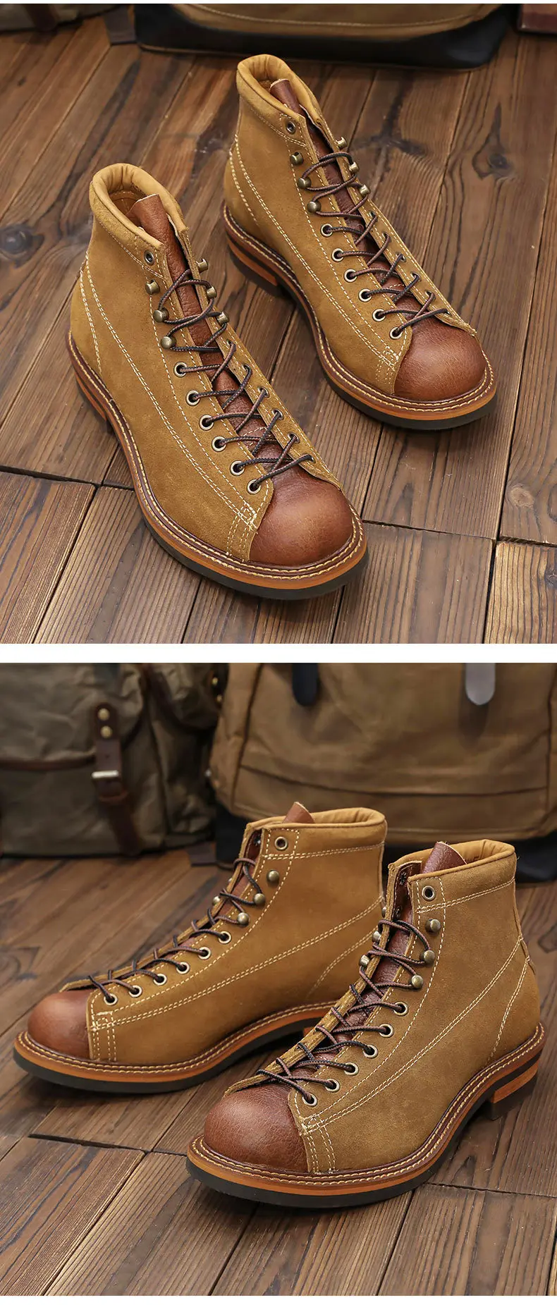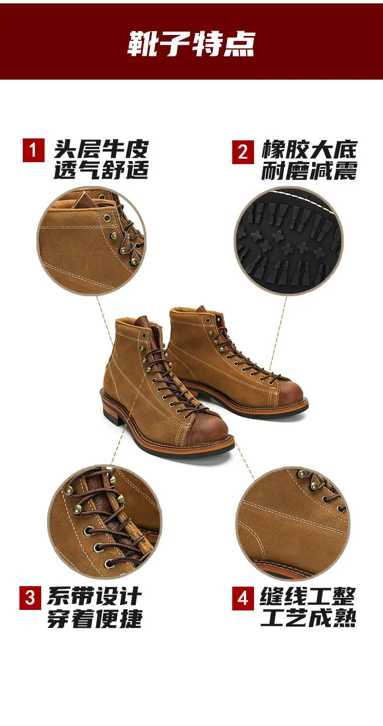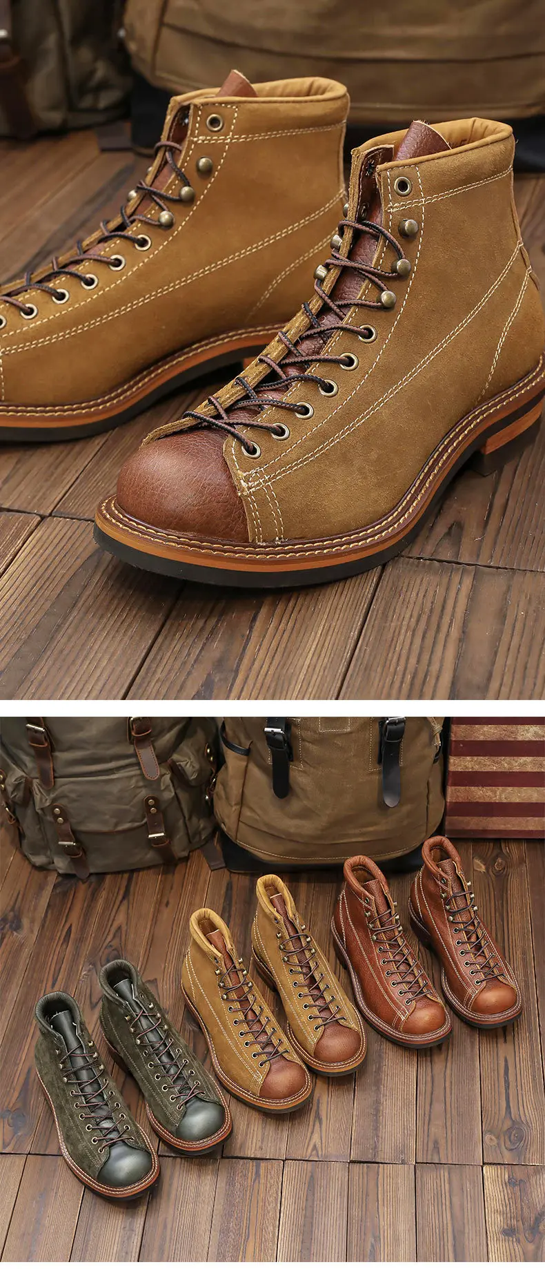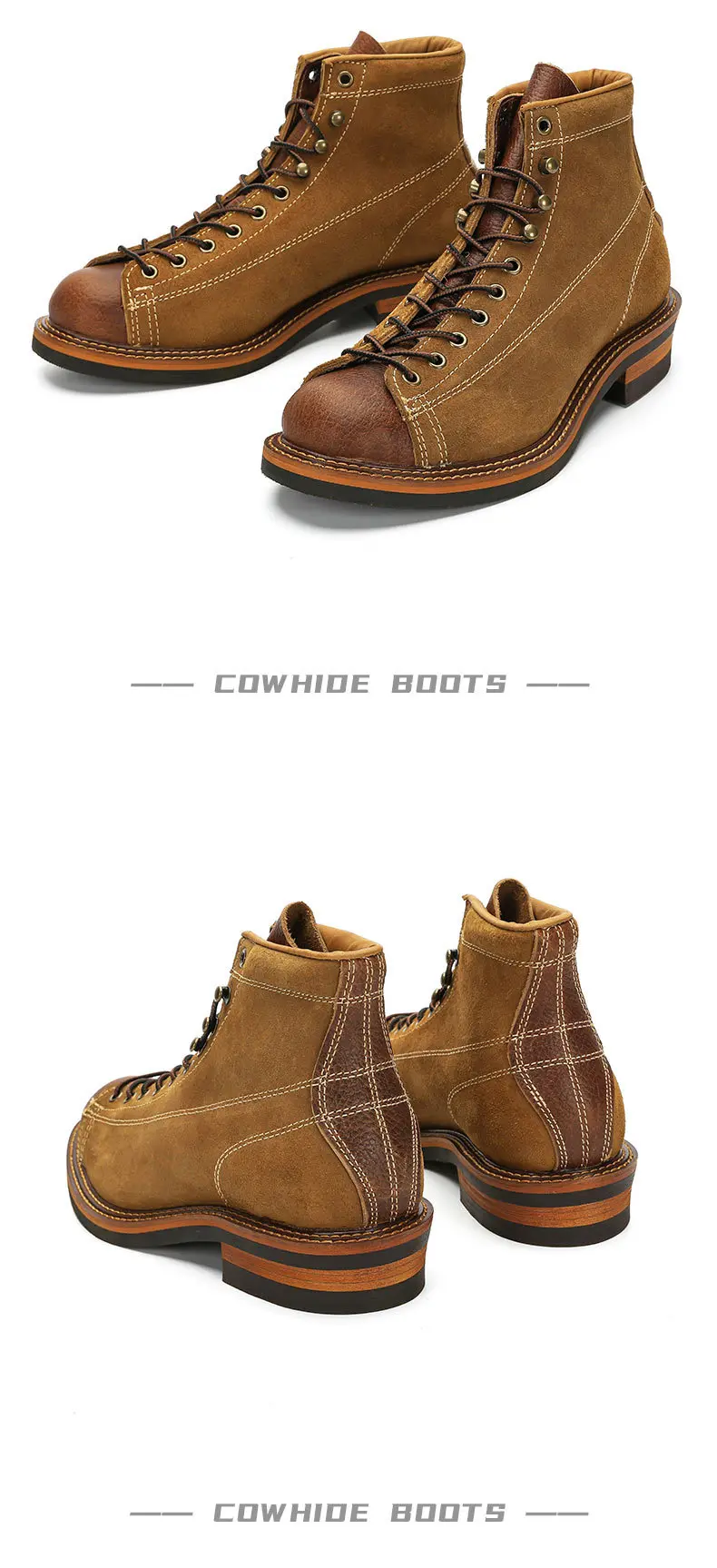 Retro Motorcycle Boots Men Cowhide Genuine Leather Durable Hight-Top Motorbike Boots High Quality Moto Rider Ankle Boots 35-44