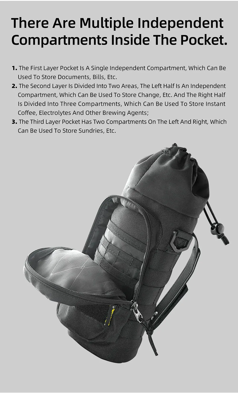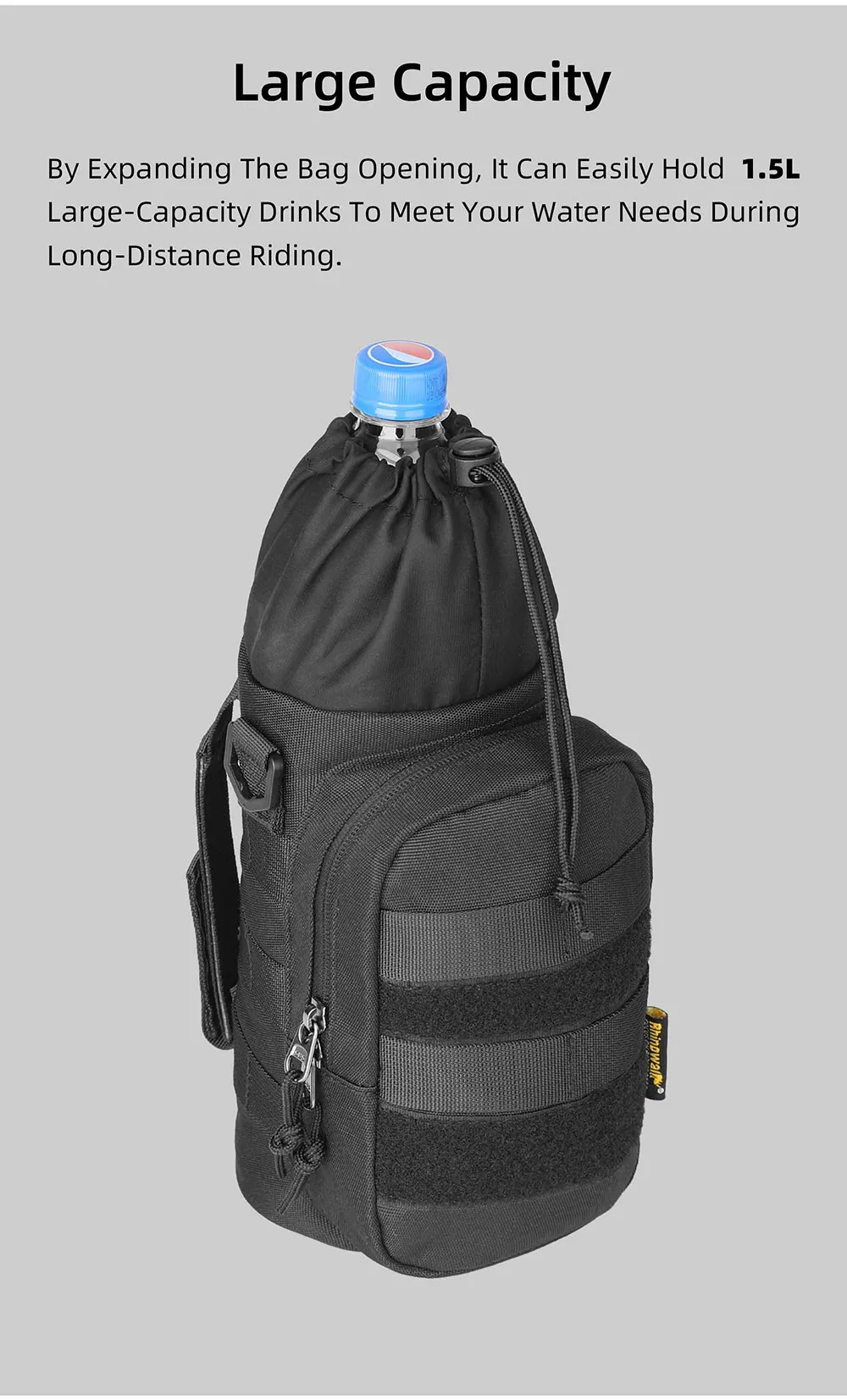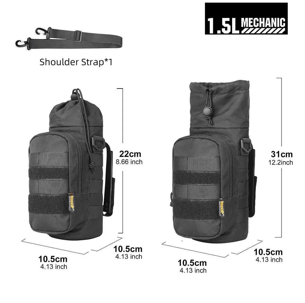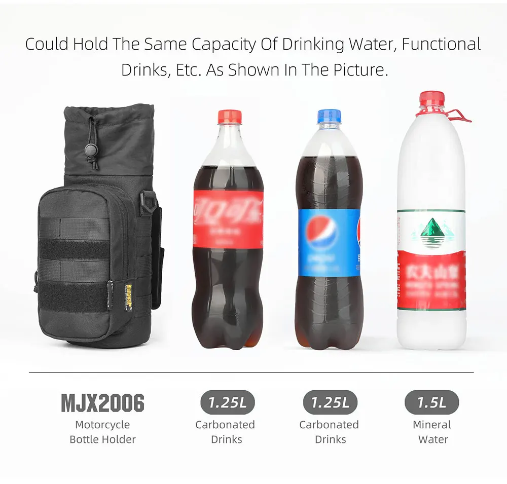 Rhinowalk Motorcycle Bottle Holder Quick-Release 1.5L Insulated Versatile Pack Motorbike Tail Painner Bag With MOLLE System