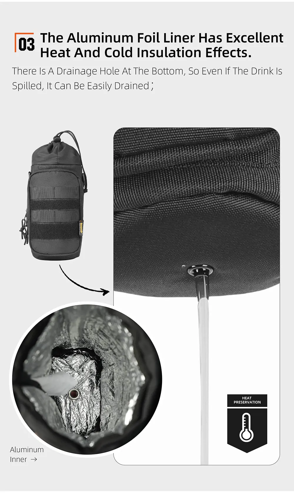 -Drainage hole design: There is a drainage hole at the bottom of the