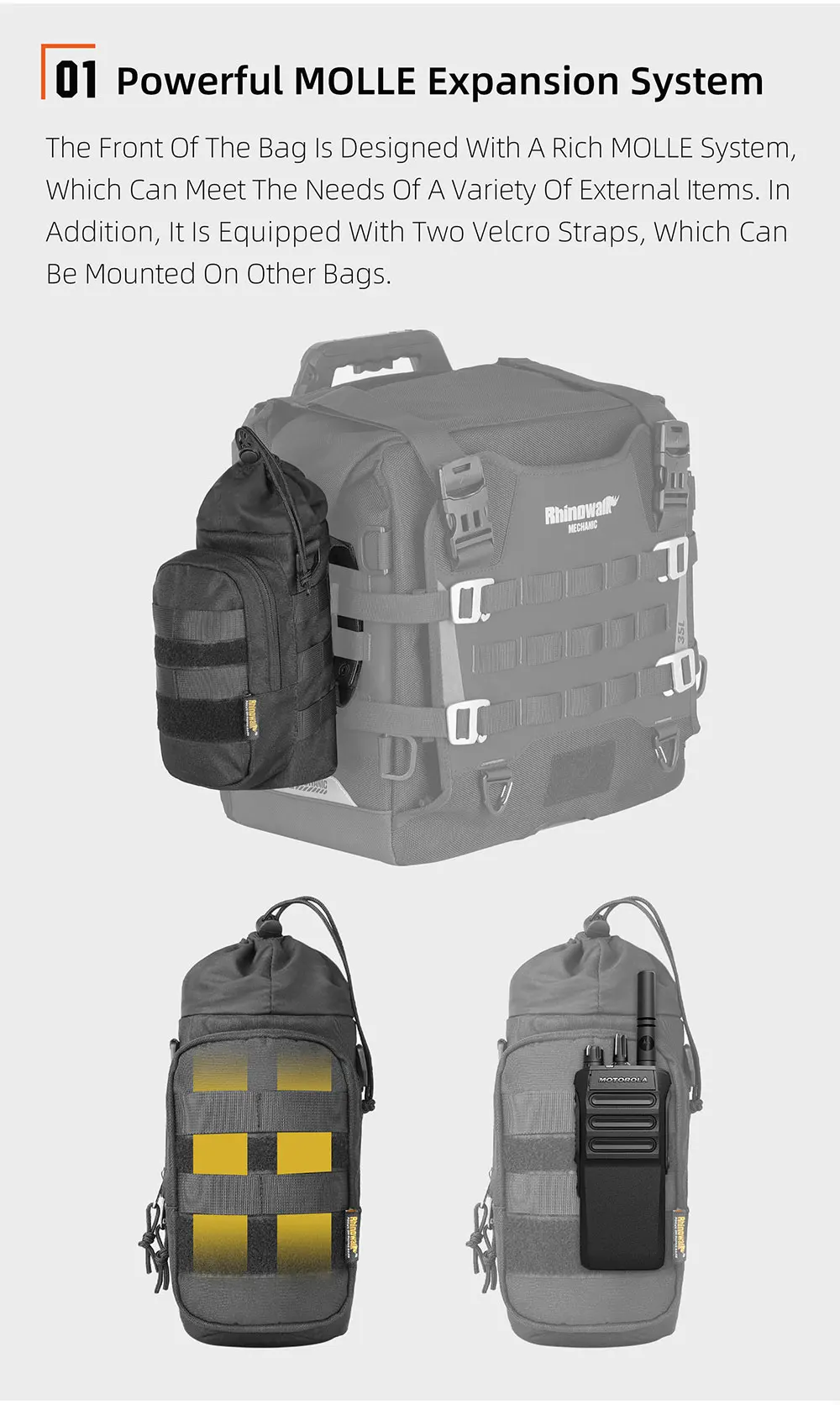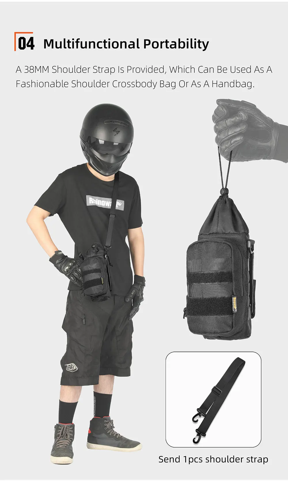 -Quick release design: fixed on the motorcycle bag through Velcro and