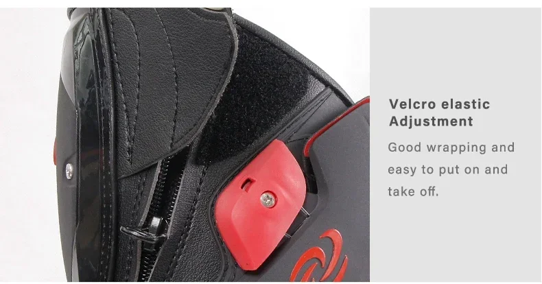 easy to wear, Ventilation design guarantee the riding comfort, Magic ankle adjustment, Reflective wear off belt, With high light reflective texture Article, easy to ride at night a rainy day