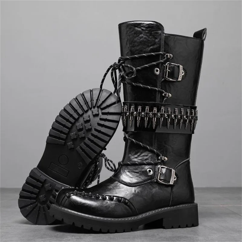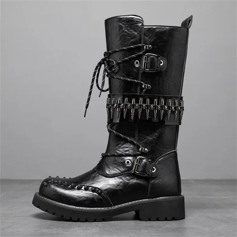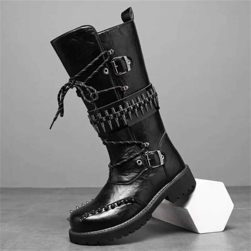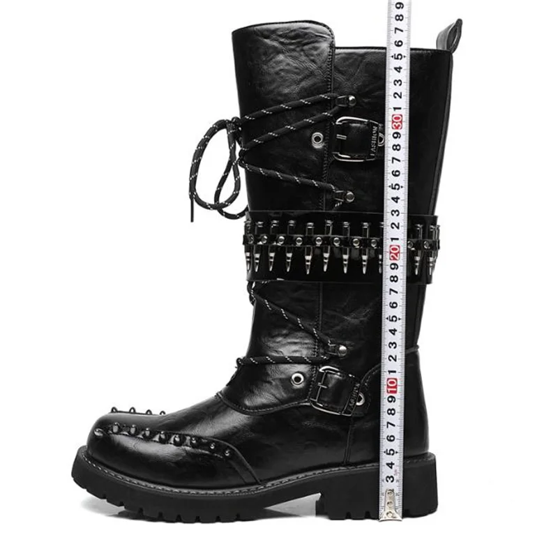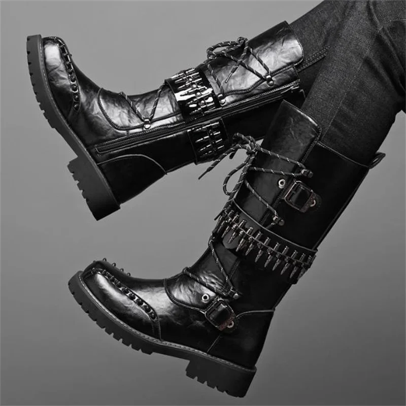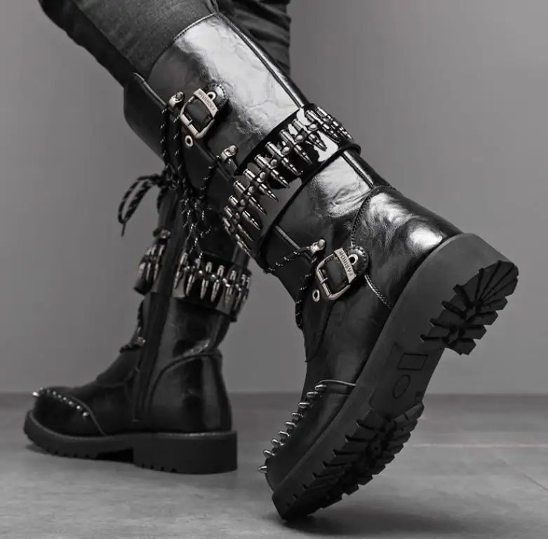 Round Toe Metal Decorations Belt Buckle men Boots Thick Sole Flats Black Zipper Fashion Punk Gothic Equestrian Motocycle Boots