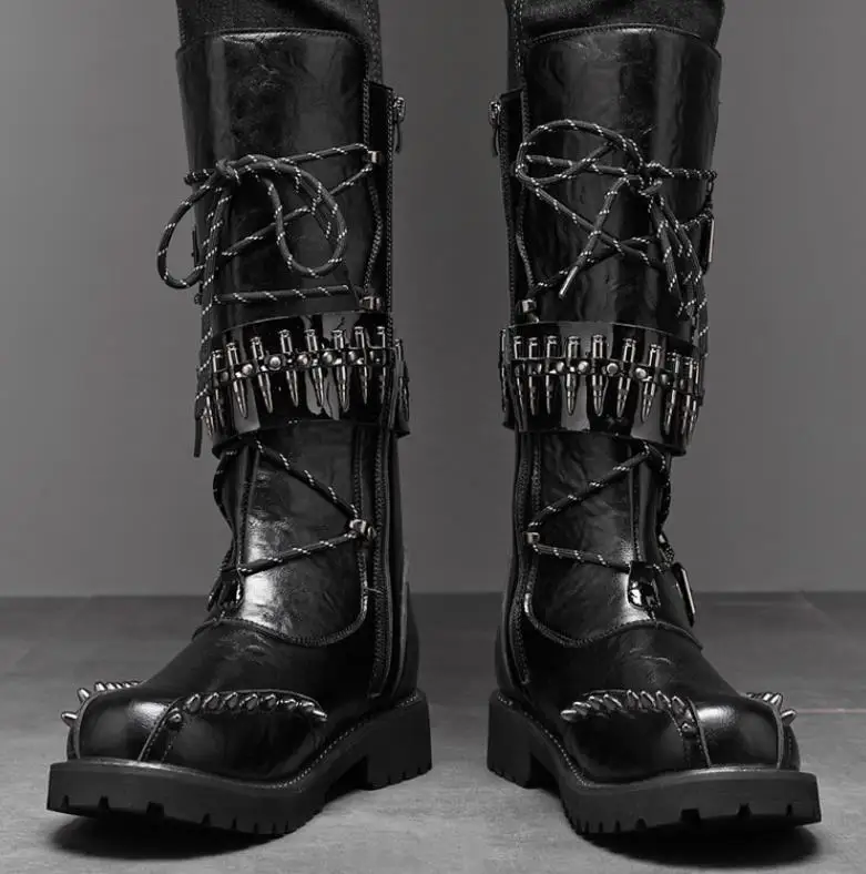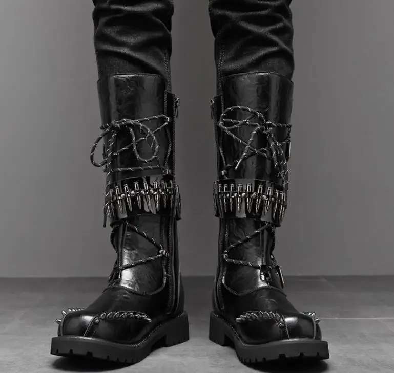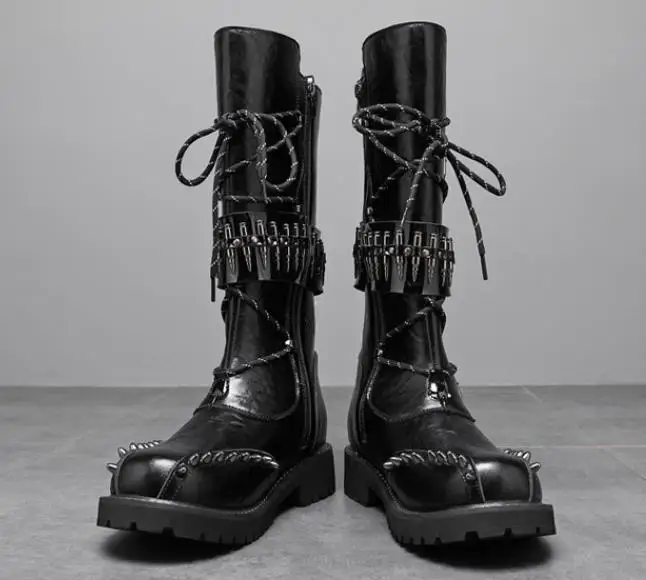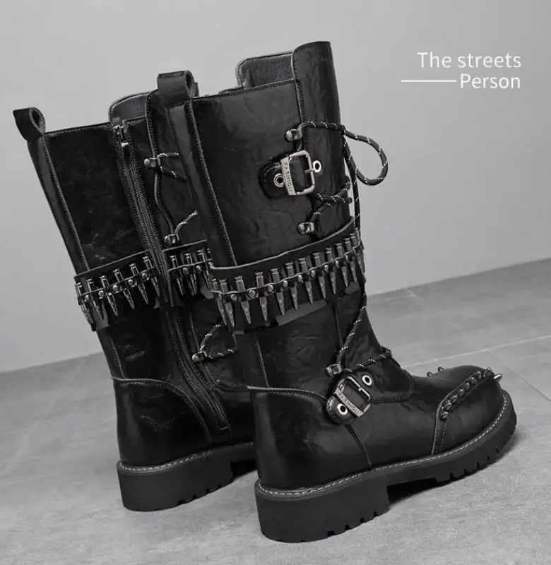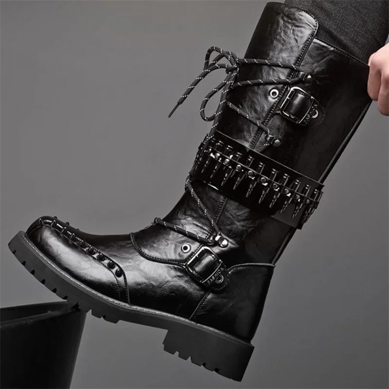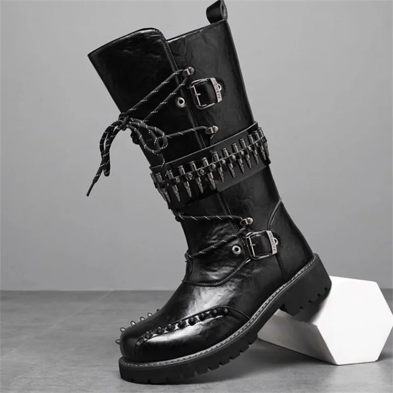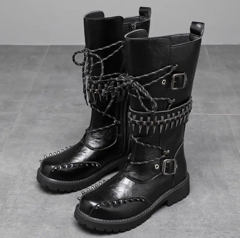 Round Toe Metal Decorations Belt Buckle men Boots Thick Sole Flats Black Zipper Fashion Punk Gothic Equestrian Motocycle Boots