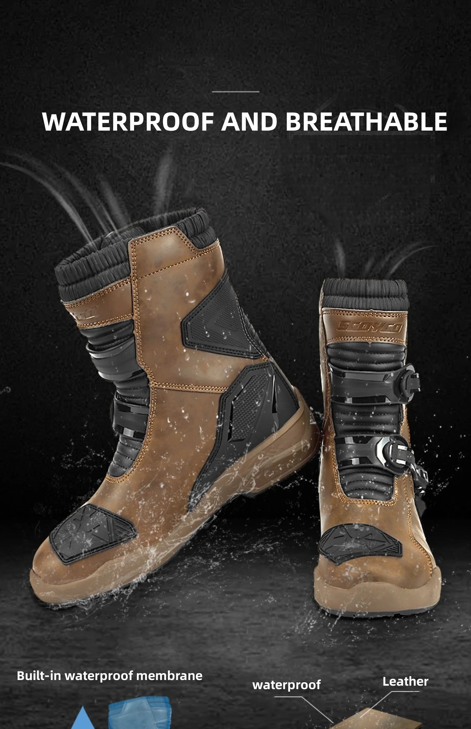 Scoyco Enduro Motorcycle Boots Waterproof Motorcyclist Botas Brown Leather Motocross Boots Off Road Racing Black For Men Knight