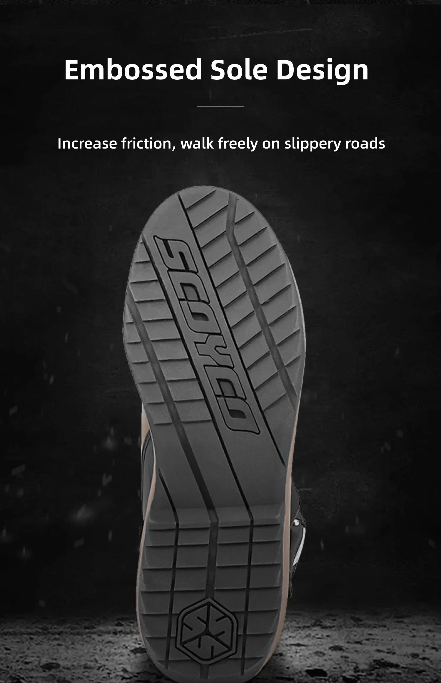SOLE: Mono compound natural rubber sole offers excellent grip and allows for natural flex.