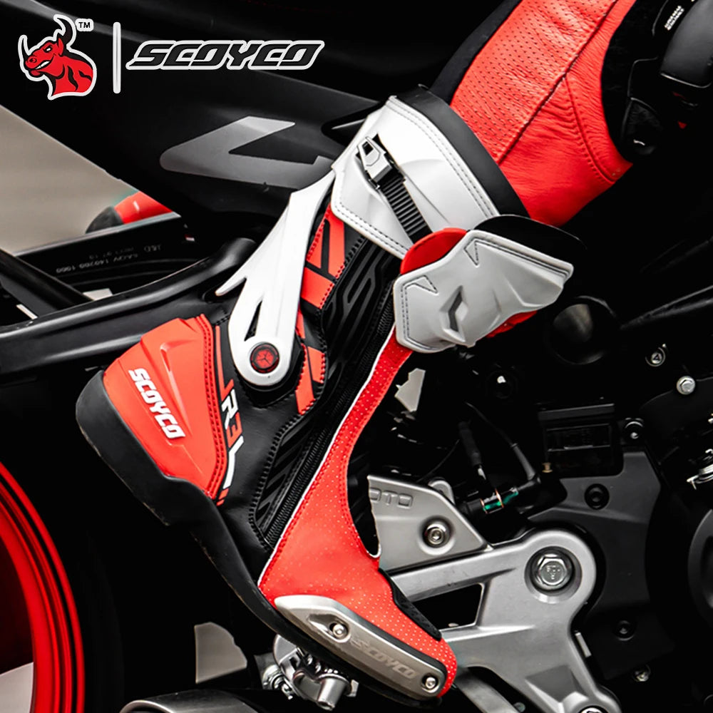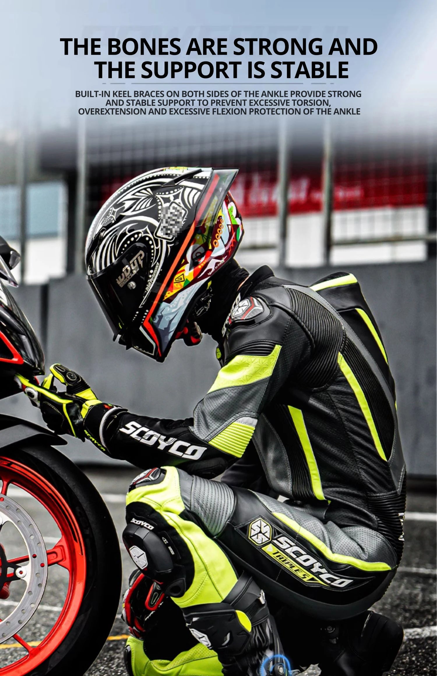 SCOYCO Knee-High Motorcycle Boots For Men Women Off-Road Highway Riding Durable Anti-Slip Sole Ankle Support All-Terrain Grip