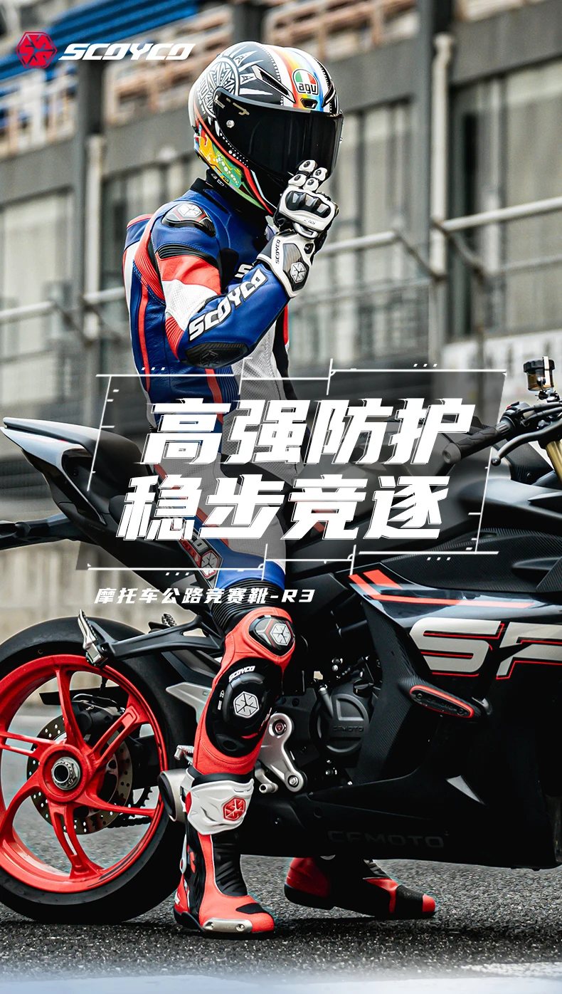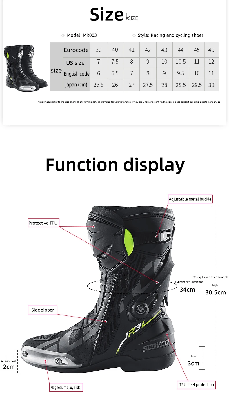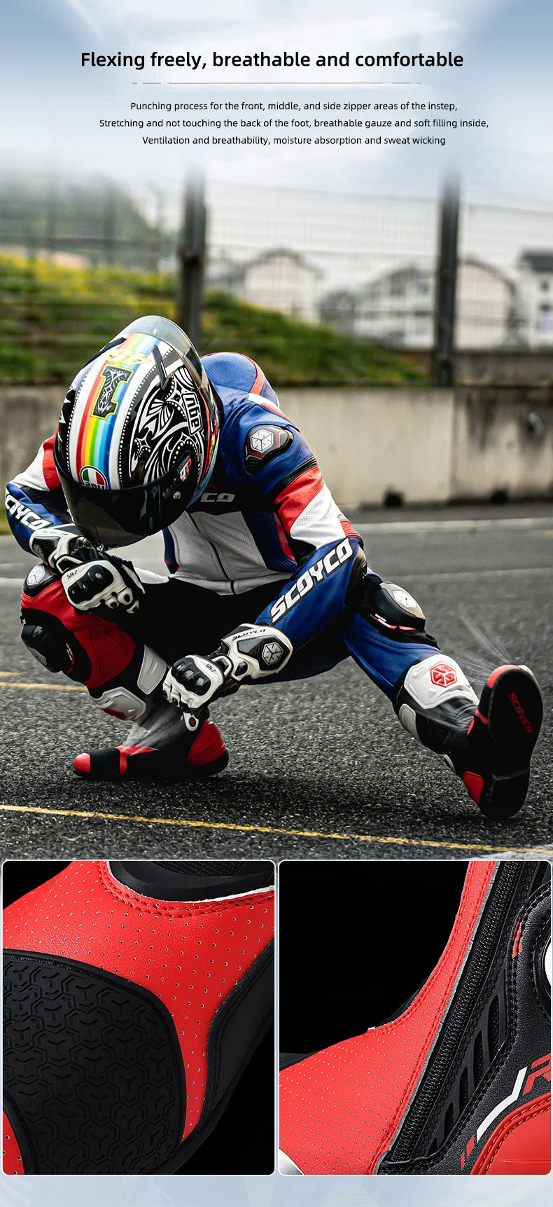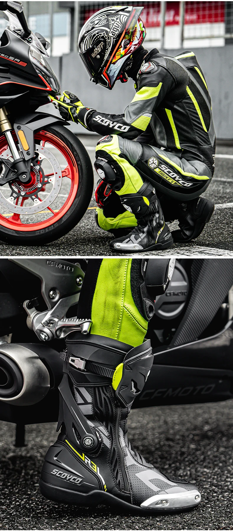 SCOYCO Motorcycle Boots Men Non-slip Anti-fall Professional Motorbike Racing Track Long Boots Mid-Calf Riding Protective Shoes