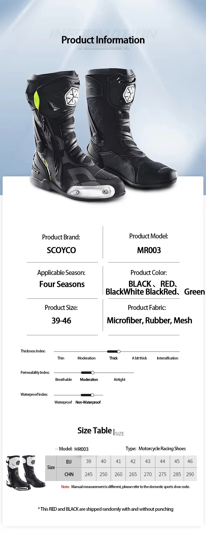 SCOYCO Motorcycle Racing Boots Unisex Waterproof Motorbike Boot Anti Fall Slip Resistant Biker For Protection Motocross Footwear