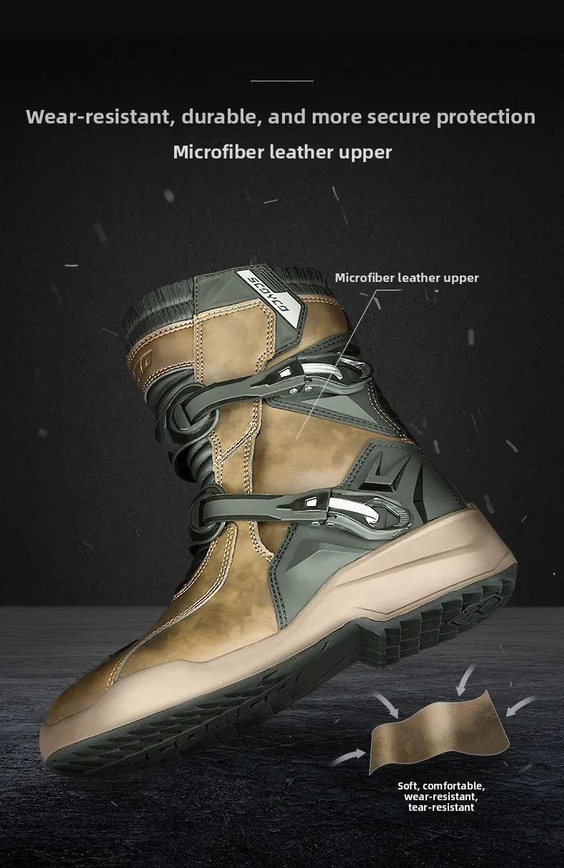 SCOYCO Motorcycle Riding Boots Motorcycle Tour Boots Waterporoof Rally Shoes Four Seasons Men Ankle TPU Protections EU 39-46