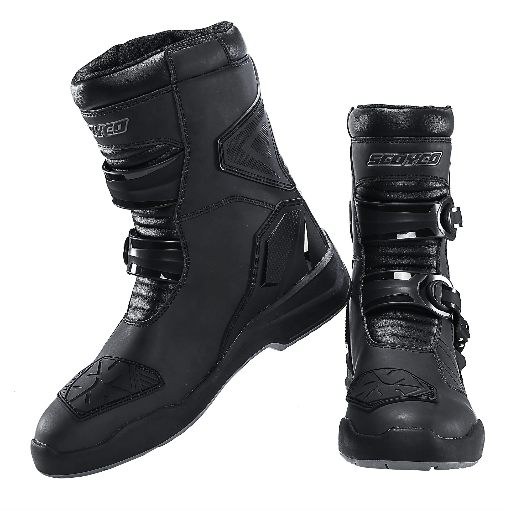 SCOYCO Motorcycle Riding Boots Motorcycle Tour Boots Waterporoof Rally Shoes Four Seasons Men Ankle TPU Protections EU 39-46