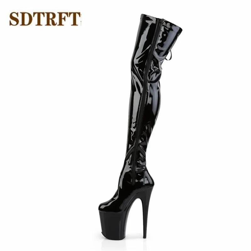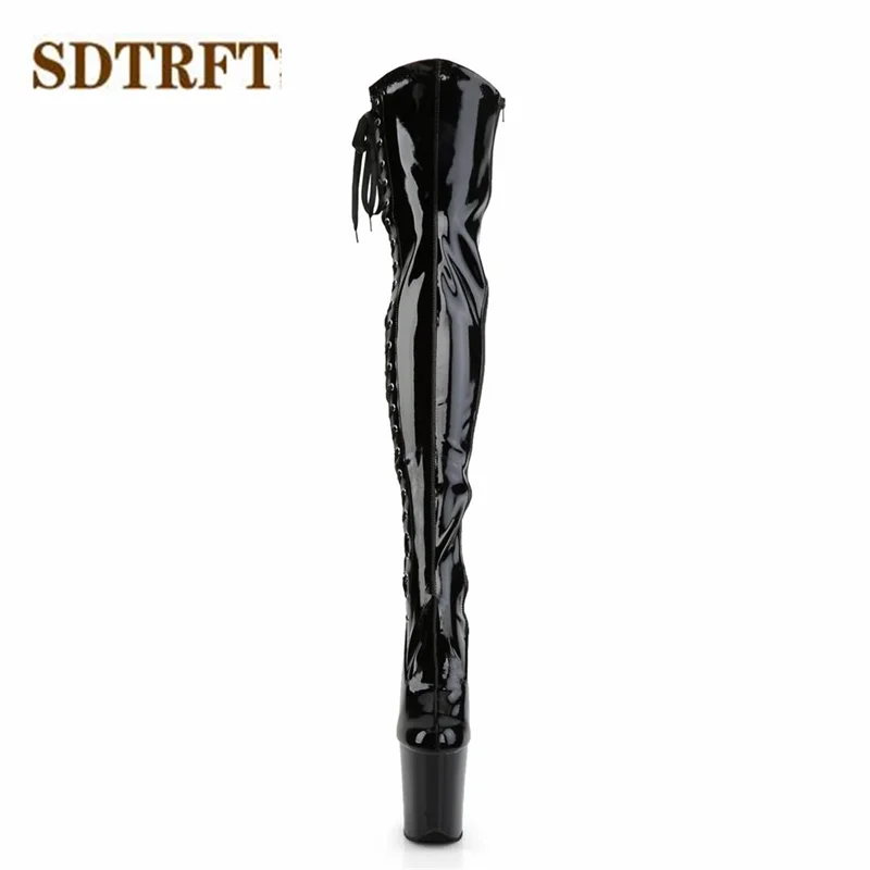 SDTRFT New botas mujer 20cm thin high heels Over The Knee Motorcycle Long boots Round Toe Lace Up shoes Woman Party Dance pumps