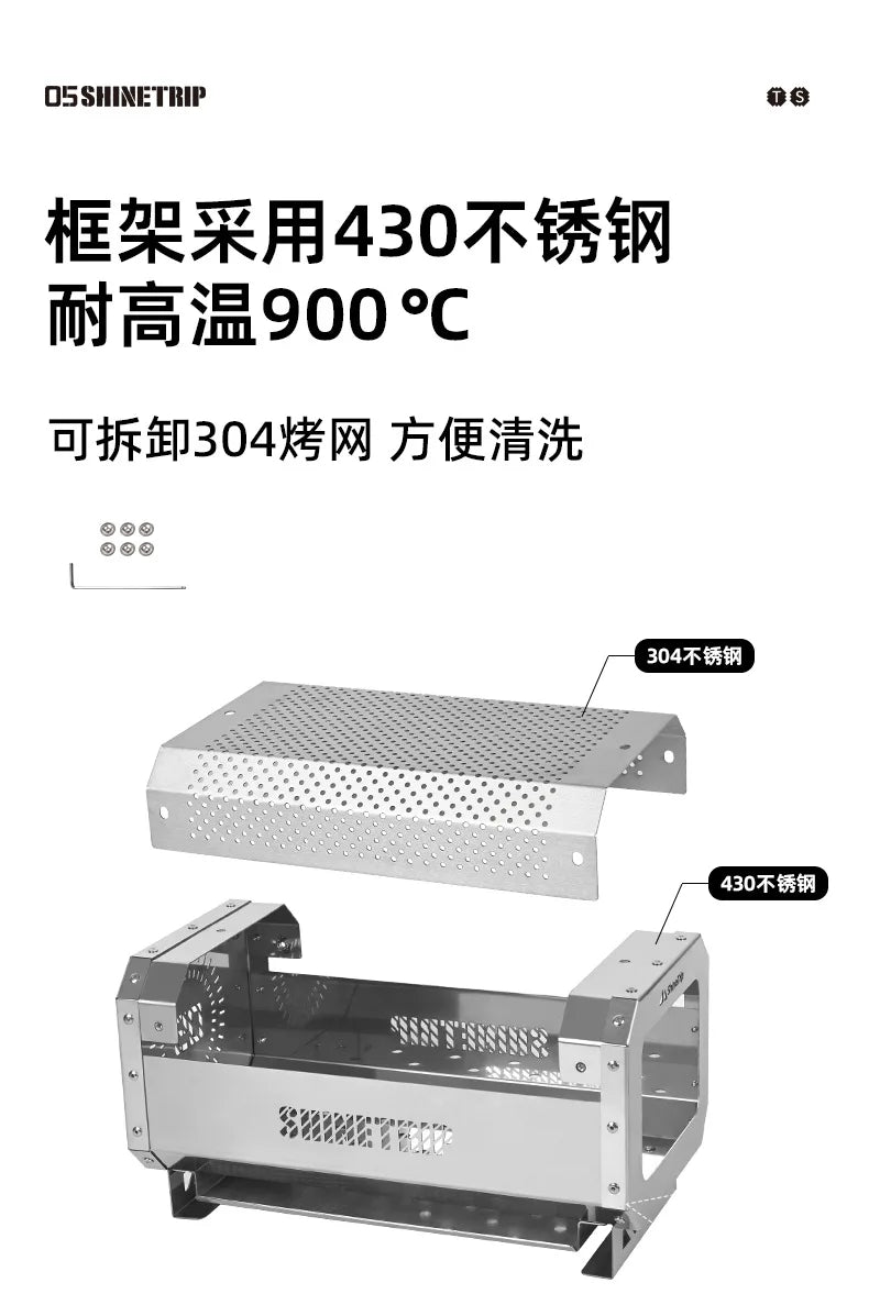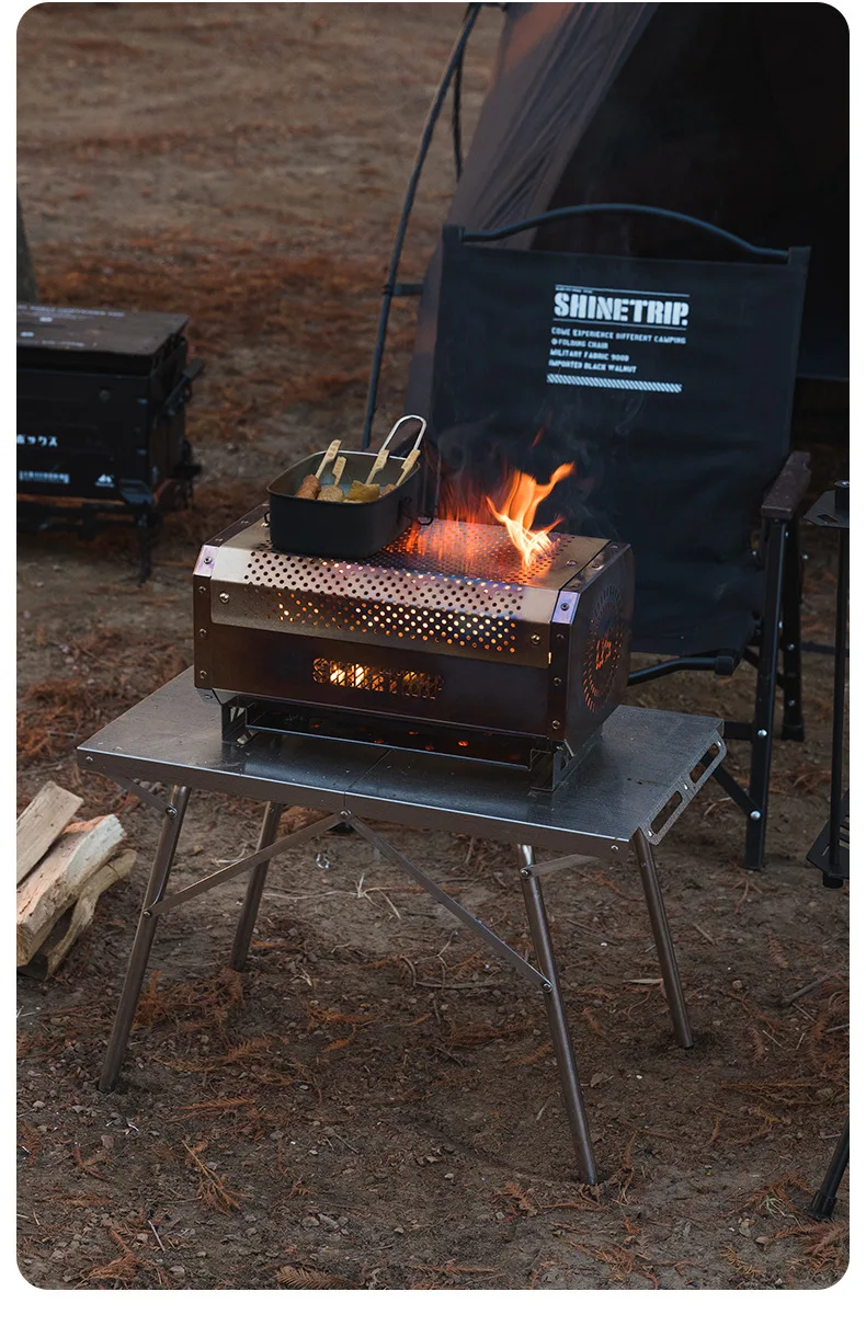 ShineTrip Outdoor Camping Stove Beacon Tower Desktop Barbecue Stove Stainless Steel Strong Firewood Burner Camping Furnace