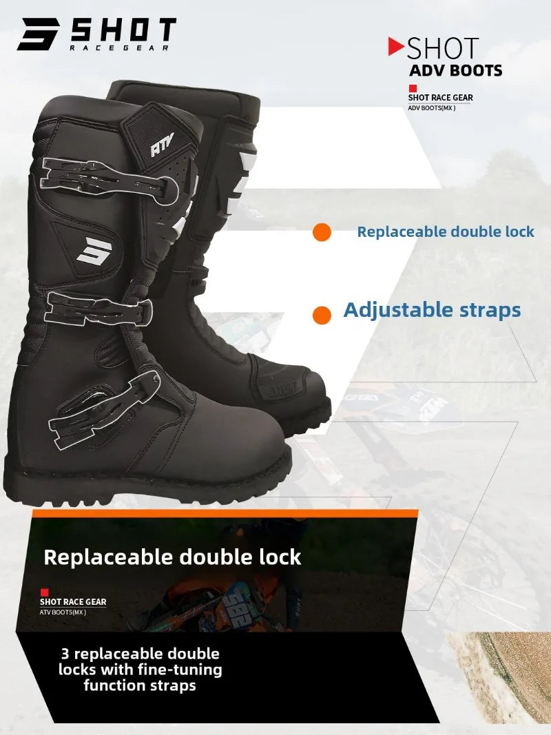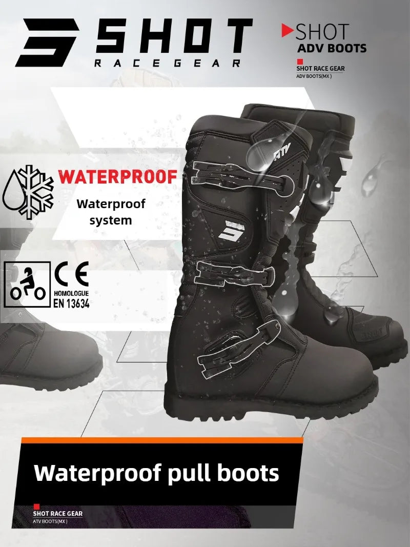 SHOT Off-road Motorcycle BOOTS Riding Rally Boots Waterproof ATV Microfiber Leather Botas CE Certification Motocross Equipment