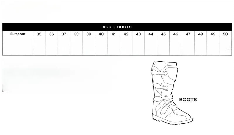 Standard European size, it is recommended to choose one size larger for off-road boots