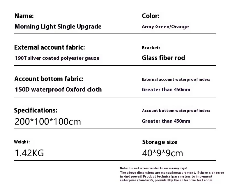 Single Camping Tent -190T Silver Plated Polyester 150D Waterproof Oxford 1.42KG Lightweight and Portable Outdoor Tent ultralight