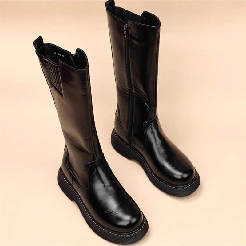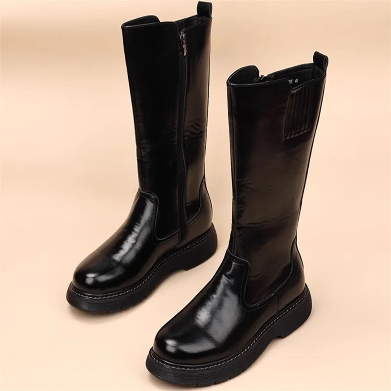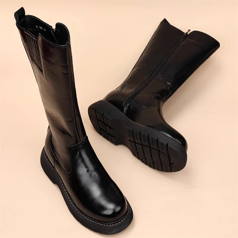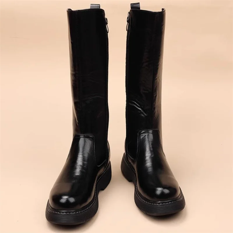 Size 38-43 Top Quality Mid Calf Punk Style Motorcycle Riding Boots Men Shoes Fall Winter Flat Heels Long Boots Male