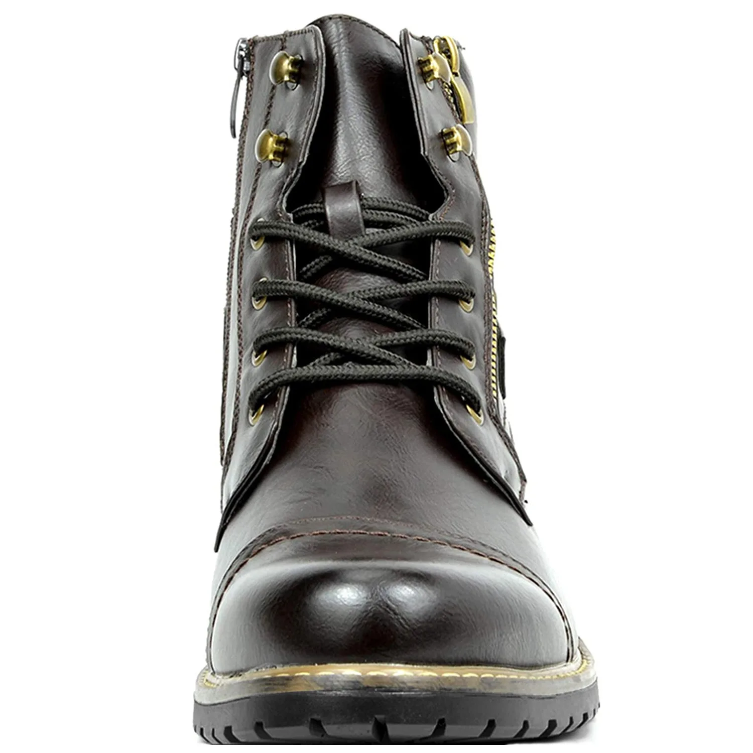 Size38-48 Men Boots Leather Round Toe Grid Pattern Square Heel Males Shoes Exquisite Fashion Leisure Design Men Motorcycle Boots