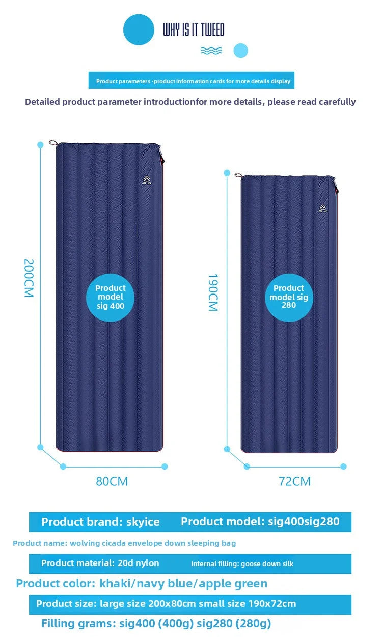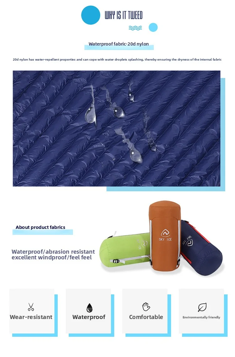 SKY ICE Lightweight Down Sleeping Bag White Goose Down Camping Portable