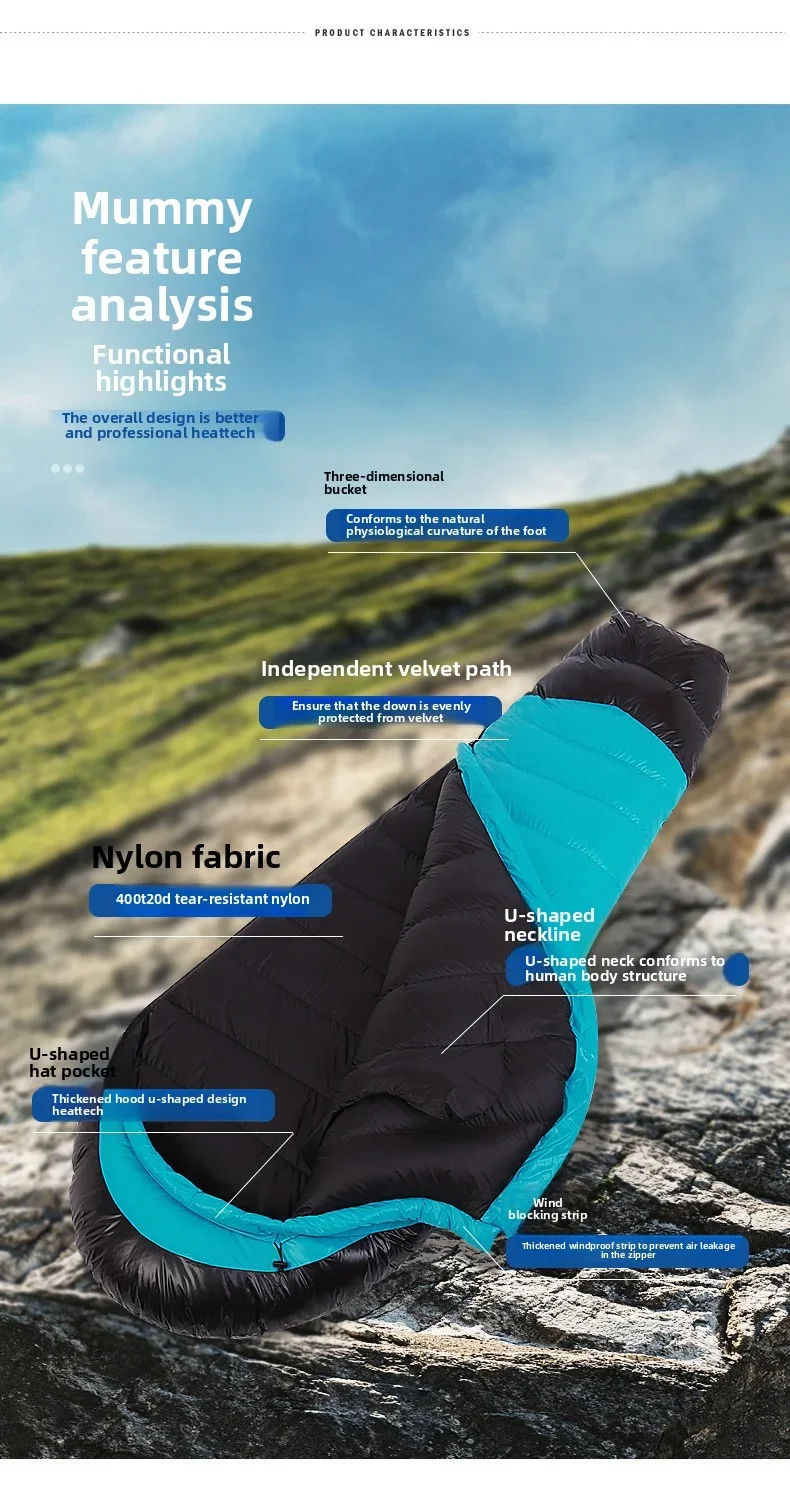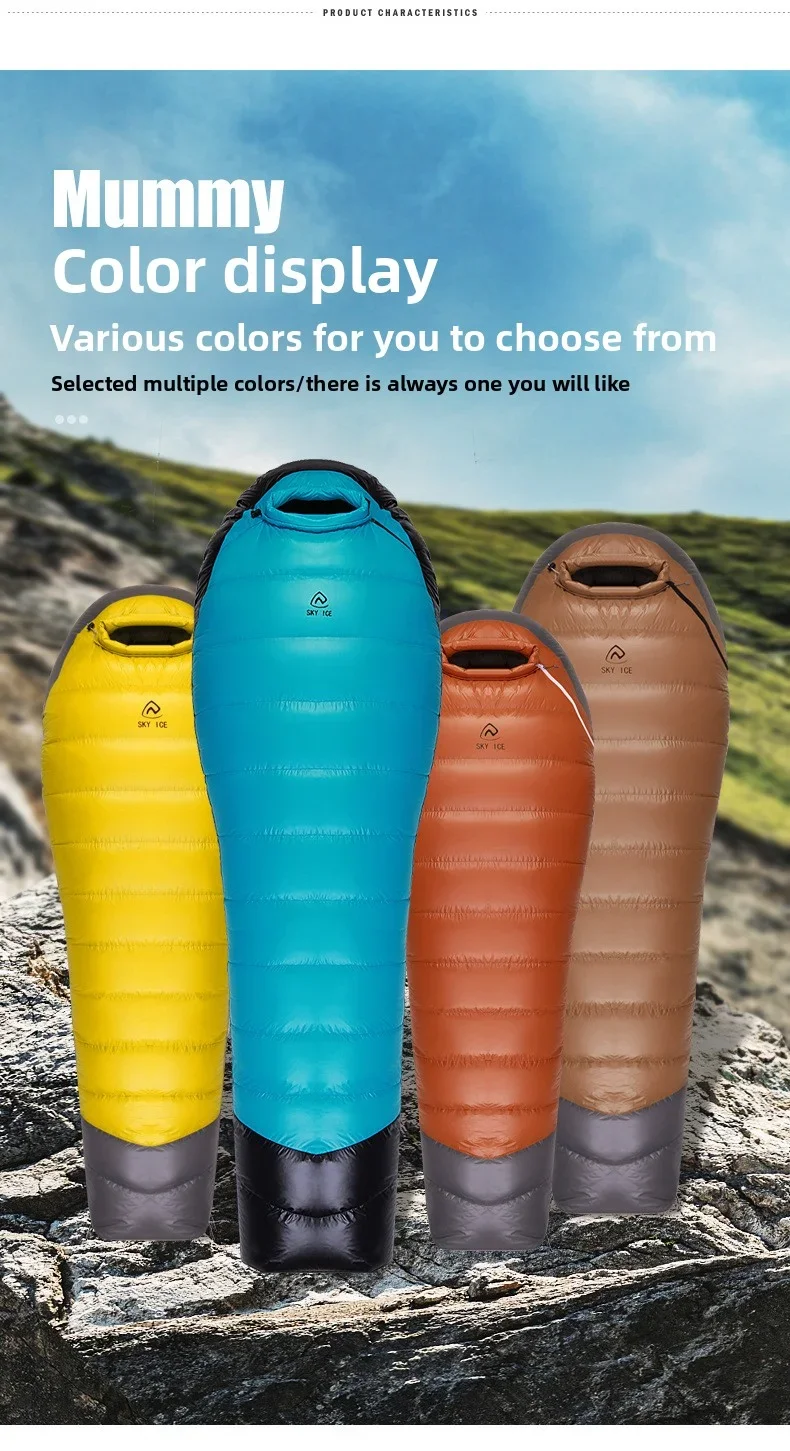 SKY ICEJingchan Mummy Down Sleeping Bag for Adults Outdoor Camping Winter Thickened Goose Down Cold-Proof Warm