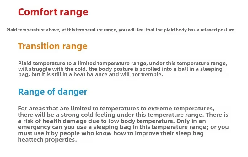 Sleeping Bag Temperature Scale Category: Spring and Autumn Sleeping Bag