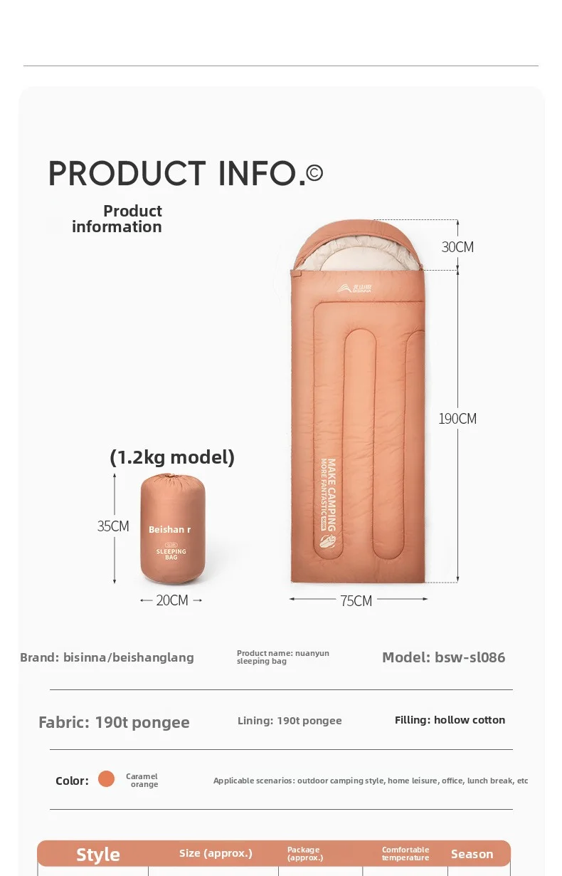 Sleeping bag for all seasons, suitable for adults, outdoor camping, overnight use, car use, and siesta, dual-purpose with warm