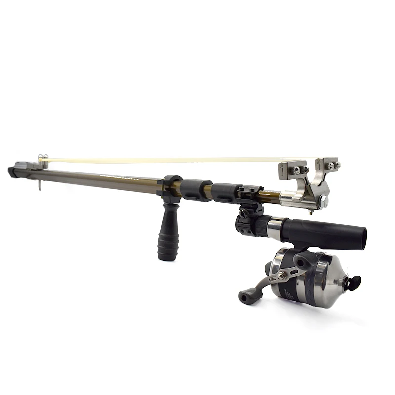 Package A5: 1*Slingshot, 1*shoot fish rubber band, 1* metal fish wheel, 1*wheel seat, 1*clip, 1*little red Laser.