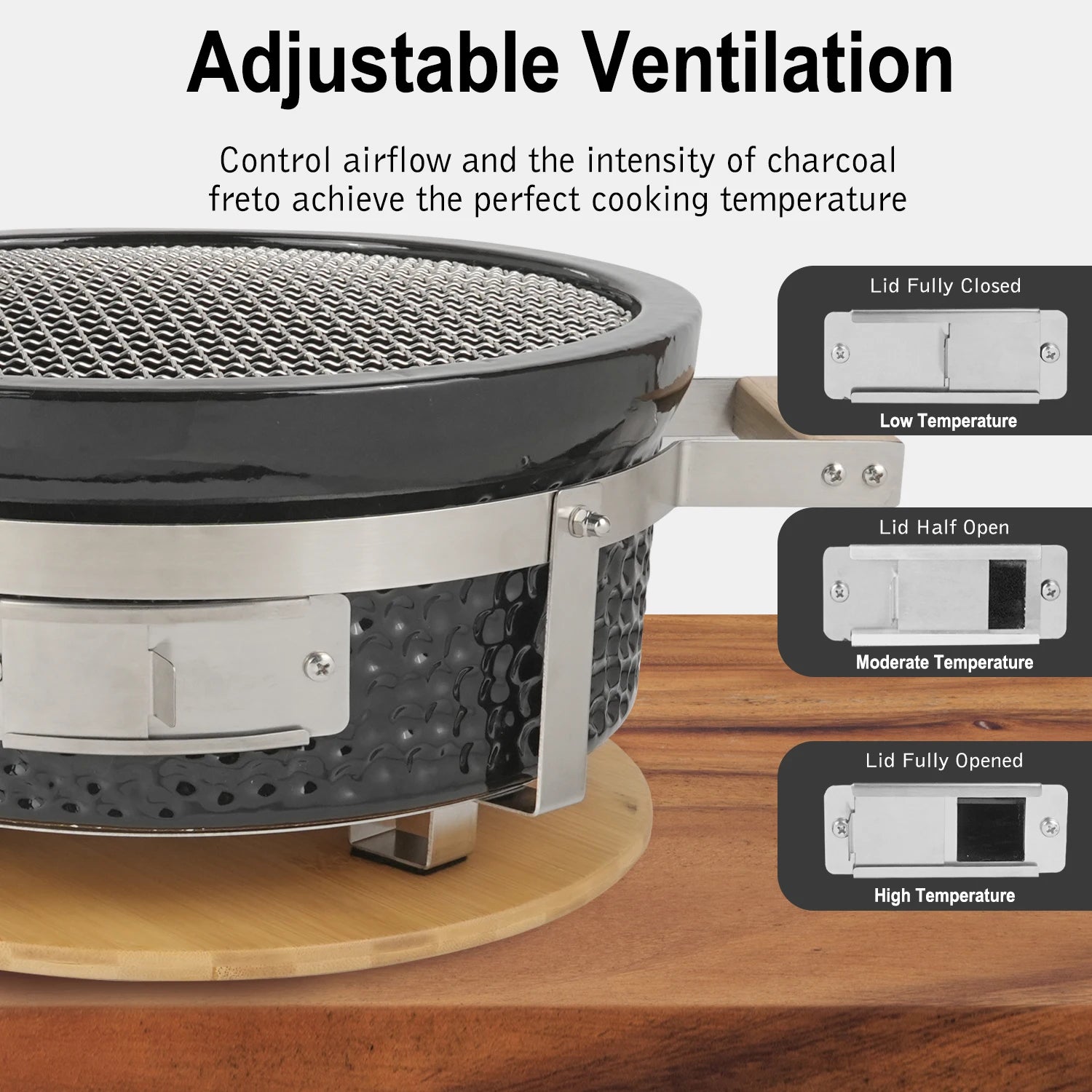Small Ceramic Hibachi Grill - Customizable Japanese BBQ Table (Indoor/Outdoor Charcoal Grill, Portable Barbecue)