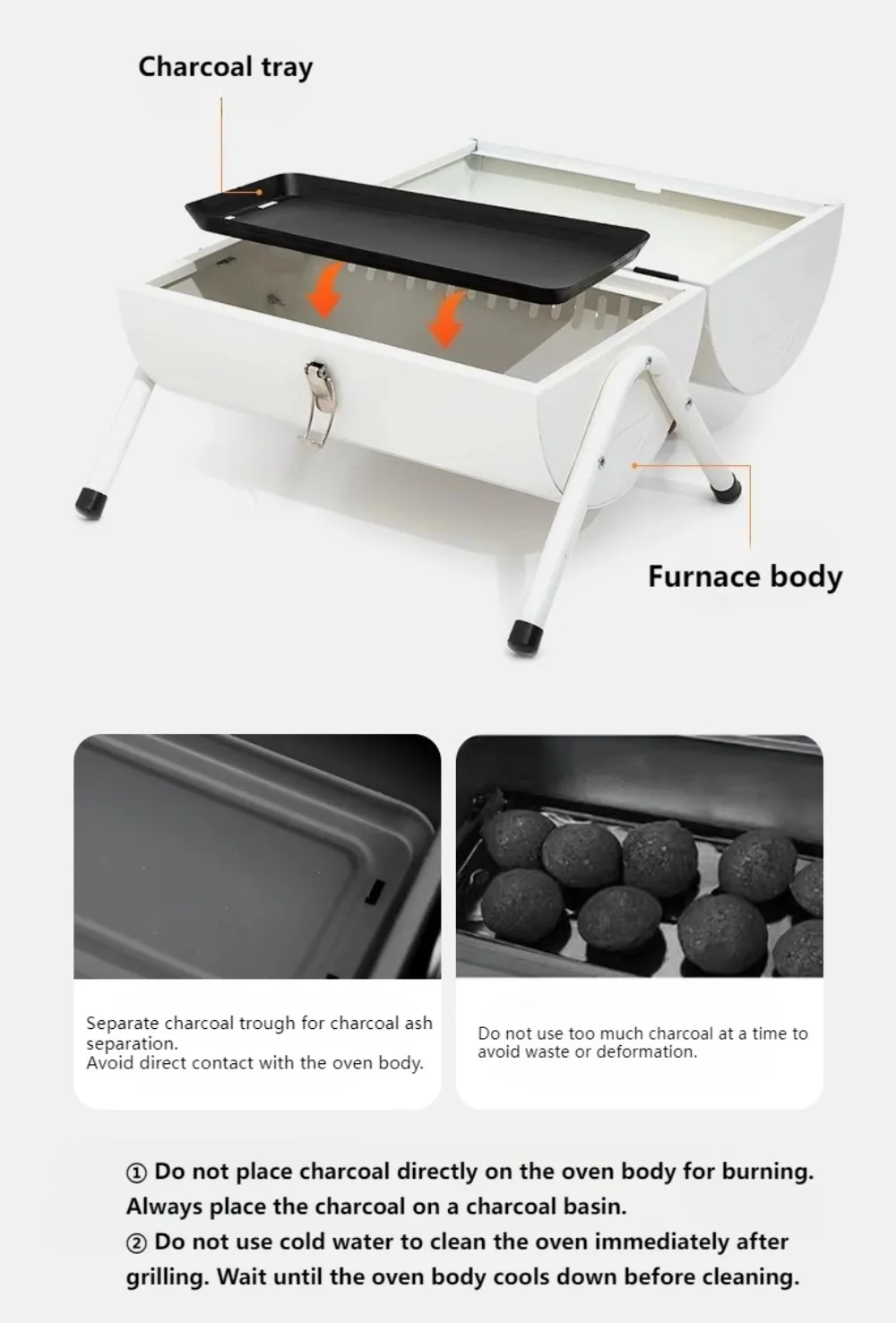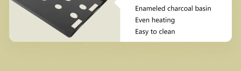 The enameled charcoal basin provides even heating and is easy to clean.