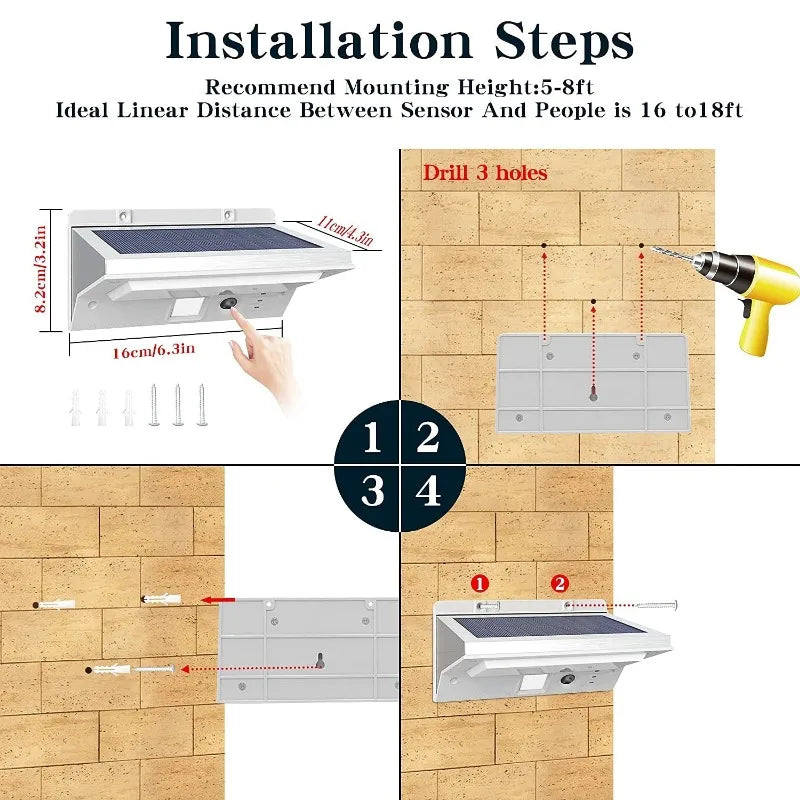 Wide Application: No wired need, no more bills. These motion sensor solar light fit for garage fence garden yard porch pool etc. When motion is detected it provides max-brightness illumination for security and safety protection for your property all night
