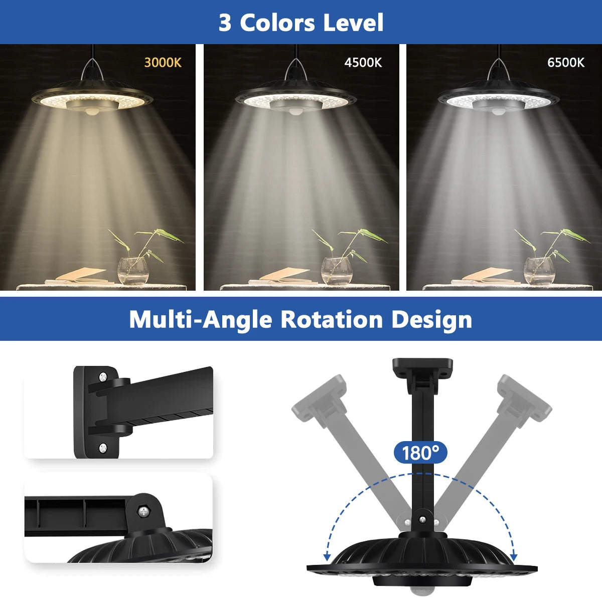 【Flexible Installation Options】--Our solar security light provides 2 easy installation options to choose from, taking only 15 minutes to complete. Hang it from the ceiling or rafters using the included bracket, or securely with sturdy steel wire or other tools. Additionally, you can mount it on the wall. Our indoor outdoor chandelier have you covered, whether you need overhead illumination or targeted lighting.