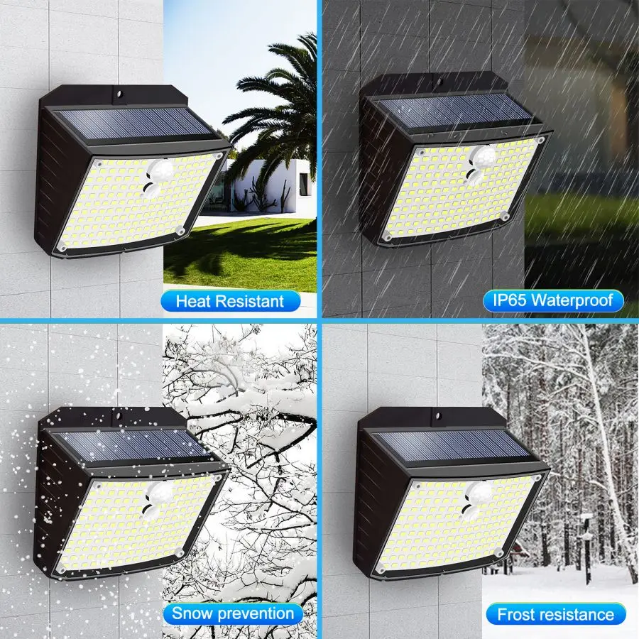 PIR Motion Inductor:Solar powered outdoor lighting provides three lighting modes: 1. Automatic all night half light is not sensed when it's dark, and automatic light off when it's bright. 2. When it gets dark, it will automatically light up slightly. When a person passes 3-5 meters, it will automatically sense strong light. When a person walks for about 20 seconds, it will automatically light up slightly. 3. The black person will automatically turn on the light after passing 3-5 meters, and it will automatically turn off after walking for about 20 seconds.