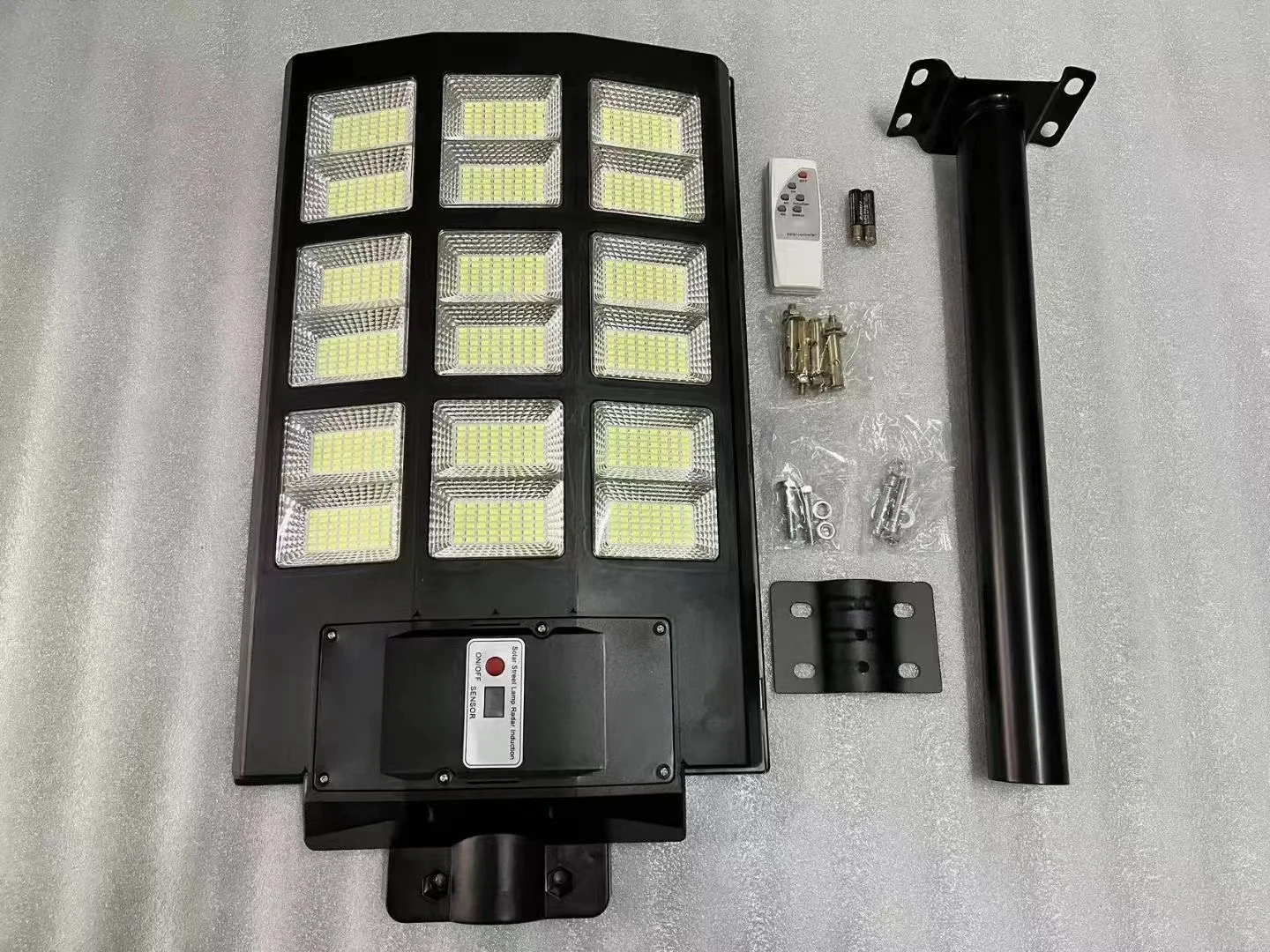 1152LED: Product Size: 680.00x350.00x80.00mm/26.52*13.65*3.12in, 800w Light Sensor + Remote Control + Body Sensor ( With Pole)