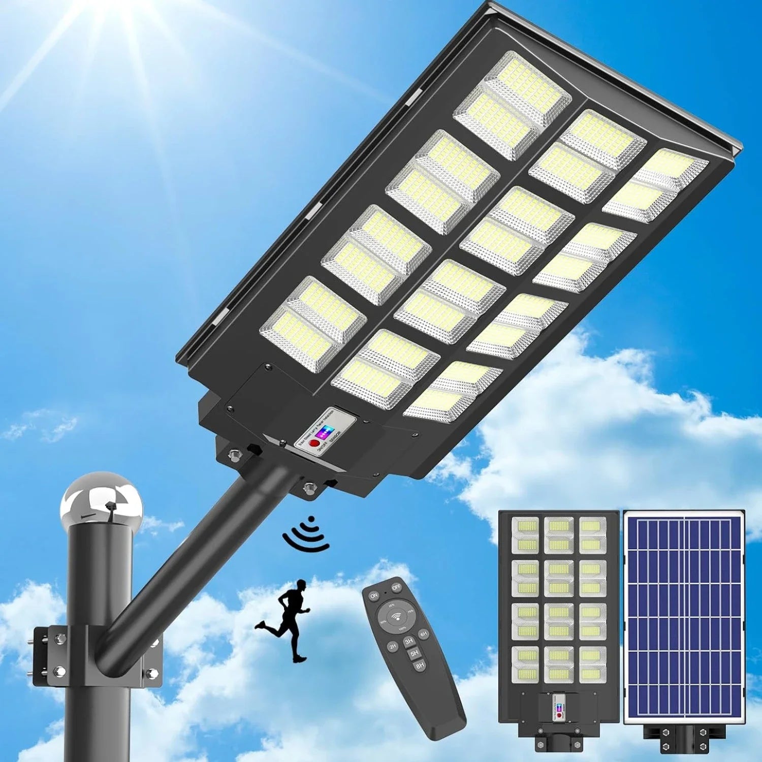 864LED: Product Size: 605.00x350.00x80.00mm/23.6*13.65*3.12in, 1000w Light Sensor + Remote Control + Body Sensor (With Pole)