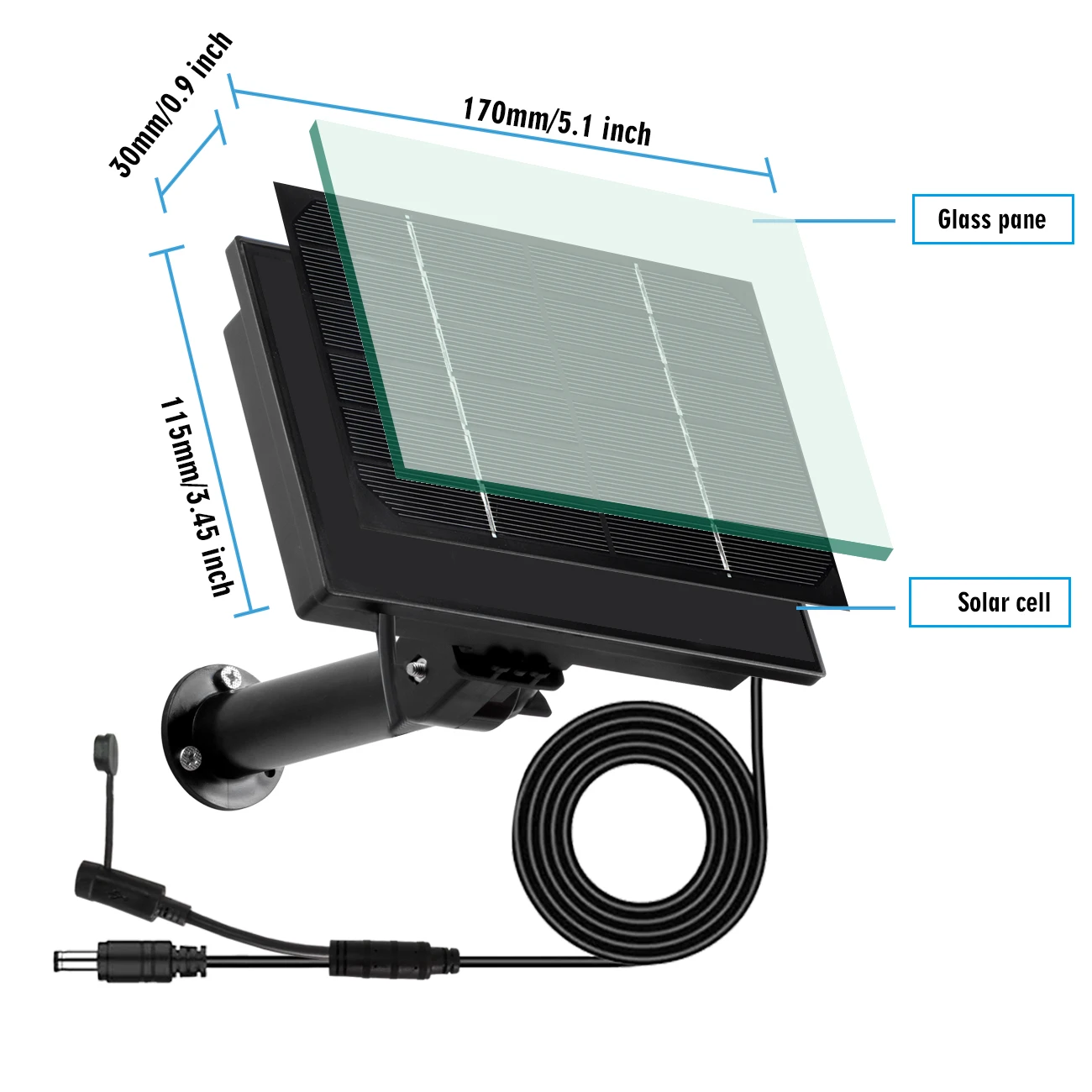 This solar panel can power hunting cameras, low-power cameras for up to 365 days. It can also charge cell phones, outdoor small power products.