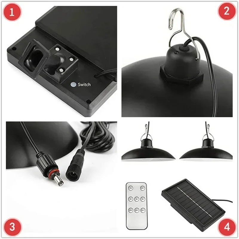 Solar Pendant Light Outdoor Waterproof LED Lamp Double-head Chandelier Decorations with Remote Control for Indoor Shed Barn Room