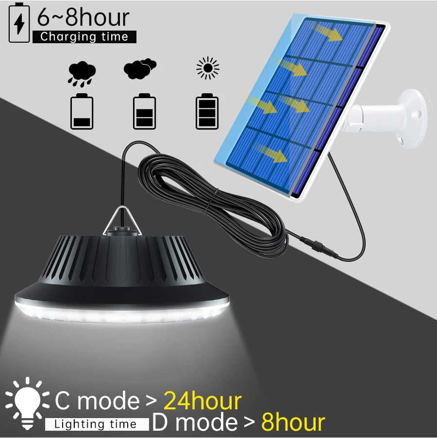 【Charge Faster & Work Longer】--With a 23% conversion rate polycrystalline silicon solar panel, outdoor pendant lights solar powered can absorb more sunlight in the daytime. can work about 4-11h after fully charge, (It depends on the brightness level and the sunlight intensity). No need extra electricity free.Please charge solar outdoor lights for 6-8 hours in full sun state before first use.