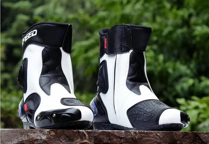 SPEED Botas Motorcycle Riding Boots for Men Rubber Sole Sport Bikes Ankle Protective Motorcycle Shoes with Zipper Closure
