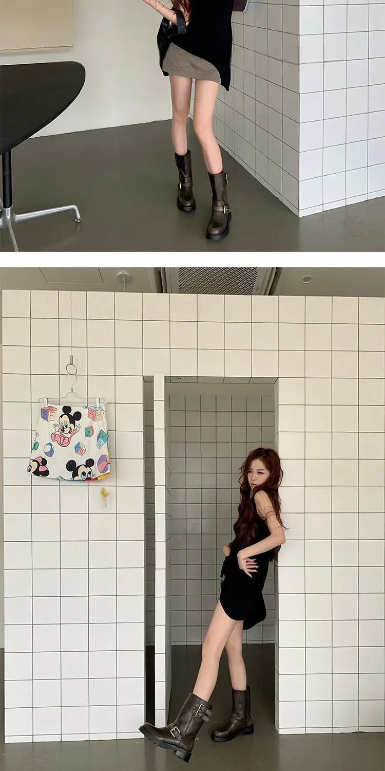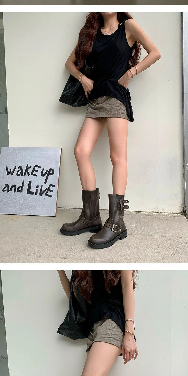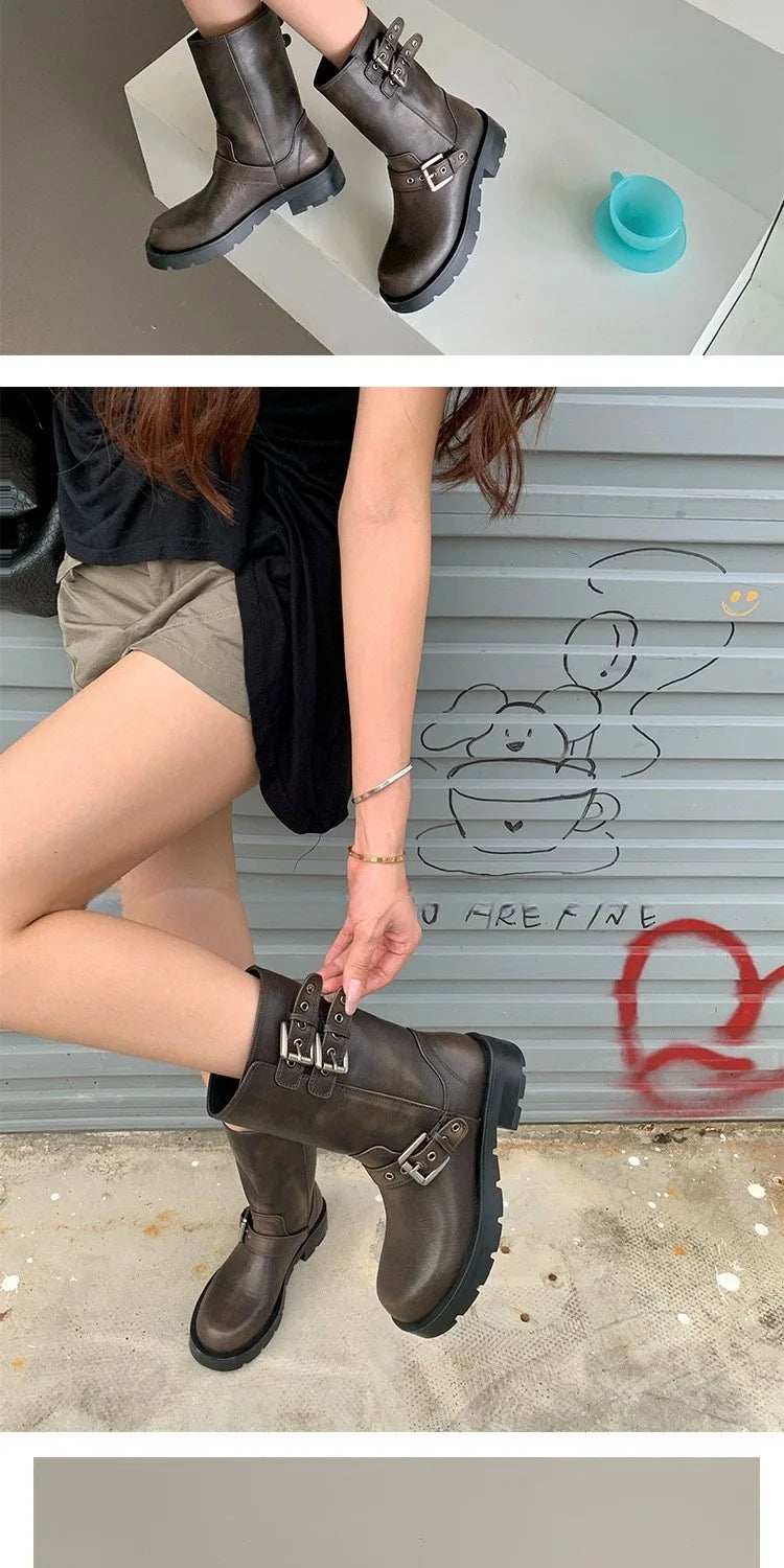 Spring and Autumn Women Boots Retro Platform Boots 2024 Round Toe Solid Color Low Heel Short Buckle Casual Women's Fashion Boots