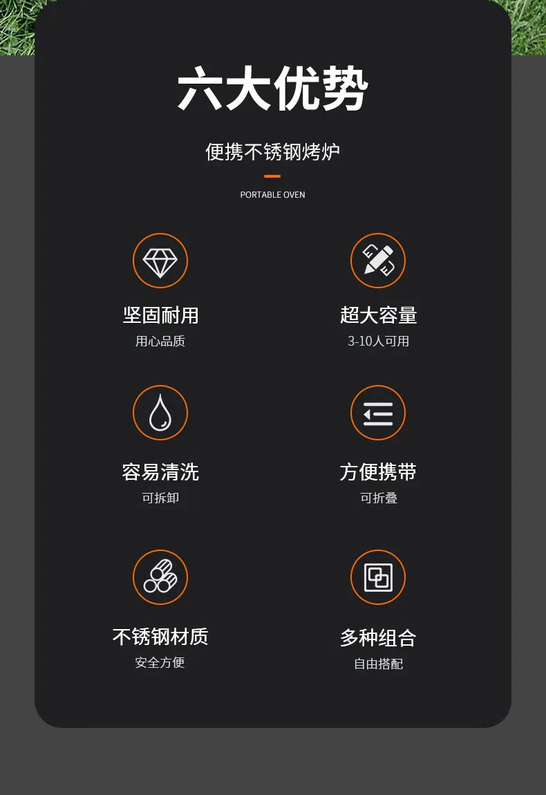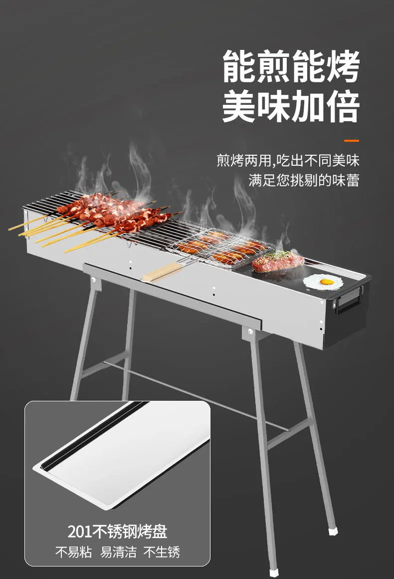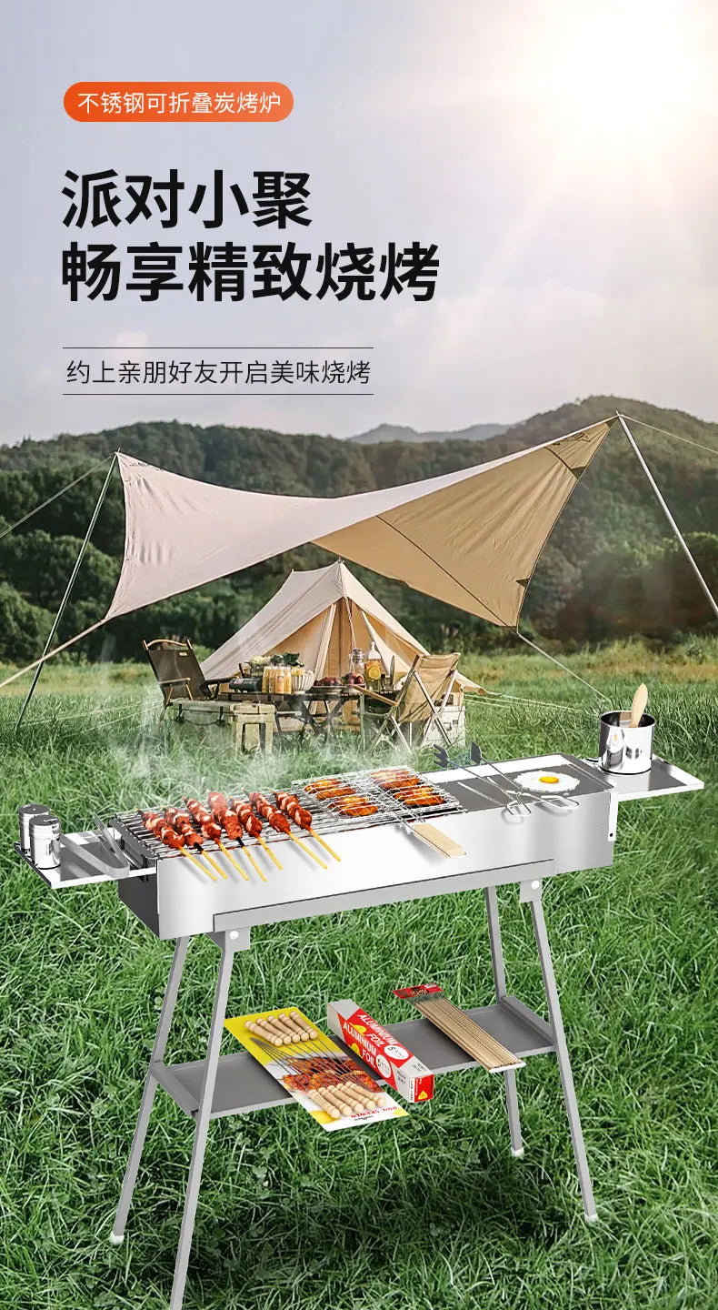 Stainless steel barbecue stove, home charcoal, outdoor large portable, enlarged grill for picnics