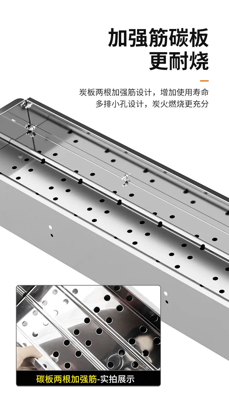 The height of the carbon layer can be adjusted by 8 or 10 cm, and the 2 sides are equipped with wind shields to control ventilation, and the finished products can be shipped without installation, and can be equipped with 201 model stainless steel fine mesh and steel chrome-plated straight strip mesh, which is cost-effective online. Patents have been applied, anti-counterfeiting must be investigated.0.8 thick set of furnace 6---9 kg weight.