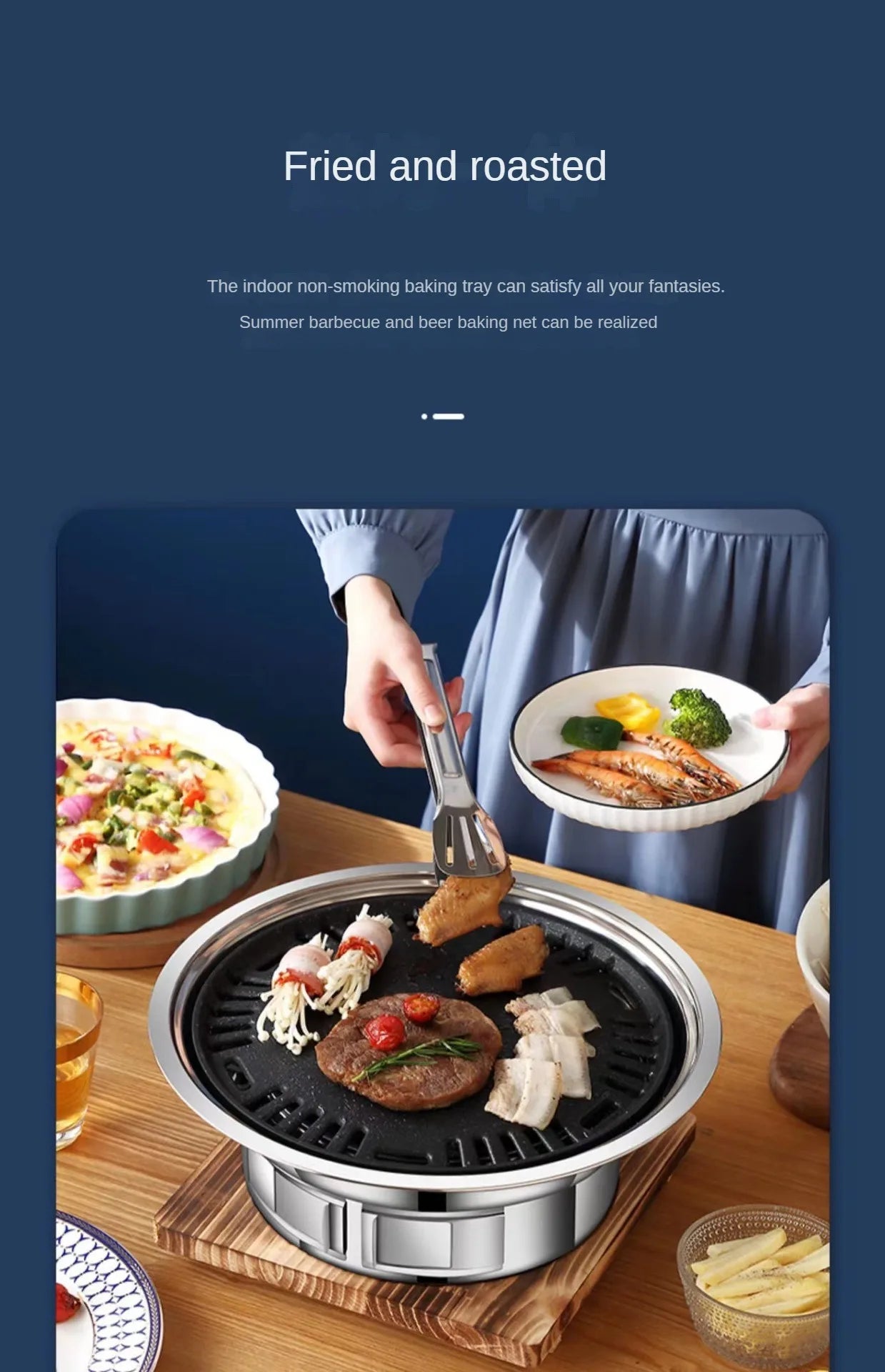 Stainless Steel Korean Barbecue Grill Round Household Commercial Camping Party Charcoal Grill Portable Charcoal Barbecue Grill