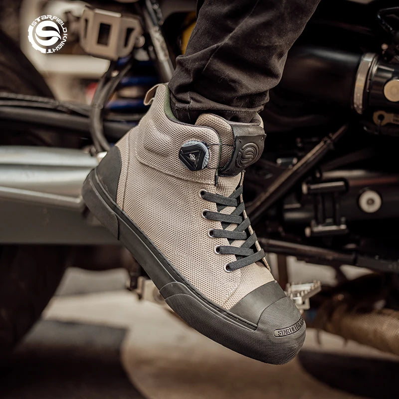 Star Field Knight Green Retro Motorcycle Riding Shoes Comfortable Breathable Hard Protection Wear-resistant Motocross Race Boots