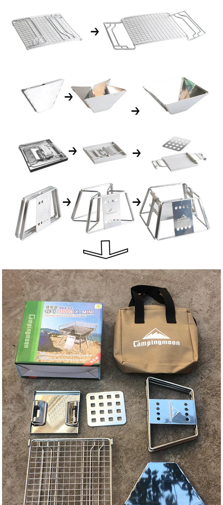 Stainless Steel Barbecue CAMPINGMOON Couple Family Barbecue 1~2 People Outdoor Barbecue X-Mini Wood Carbon Small Barbecue