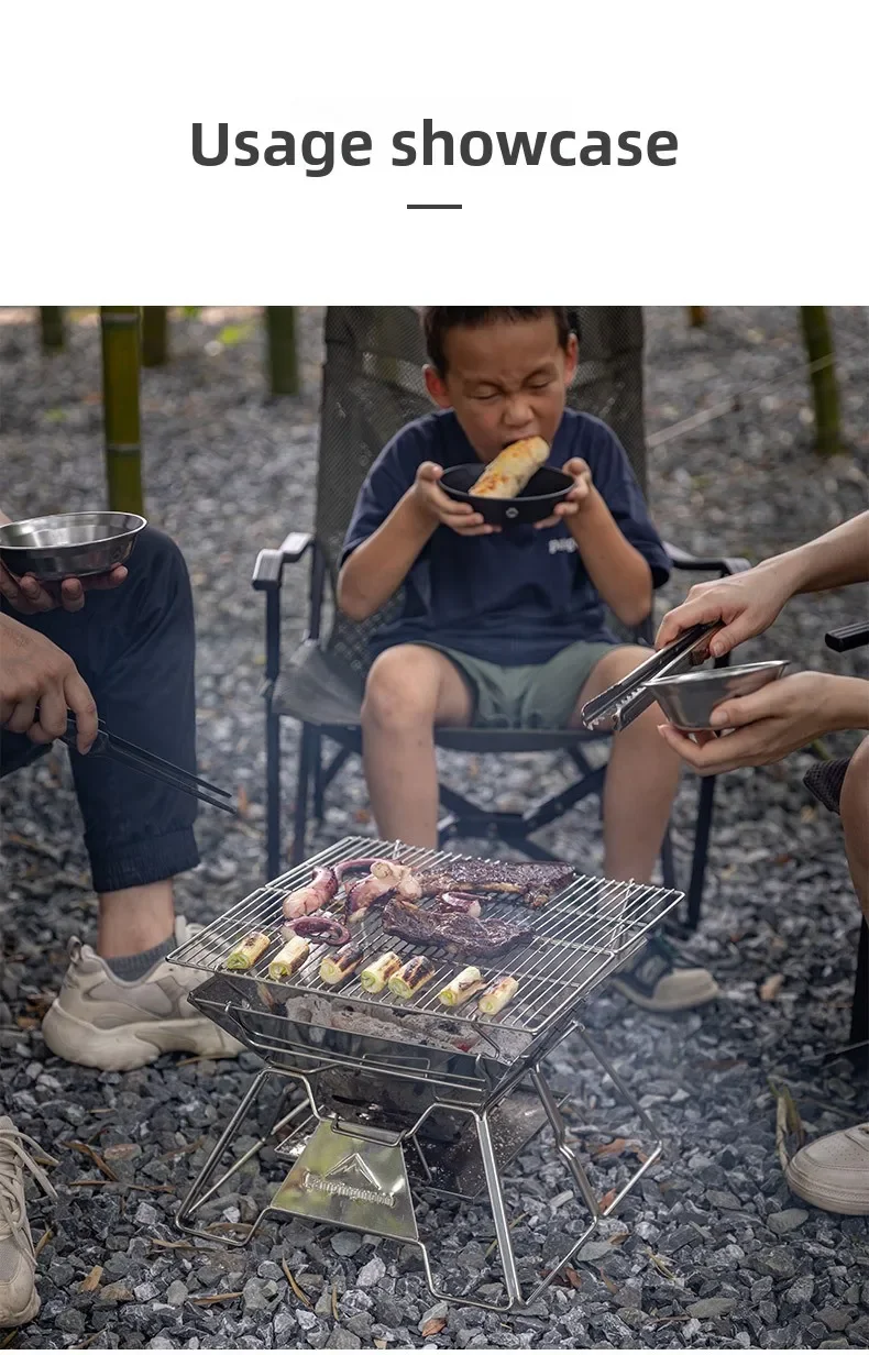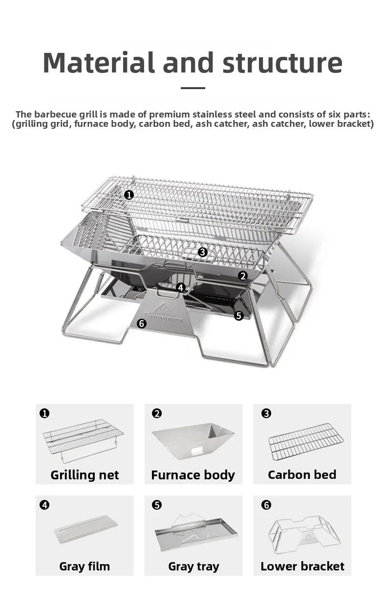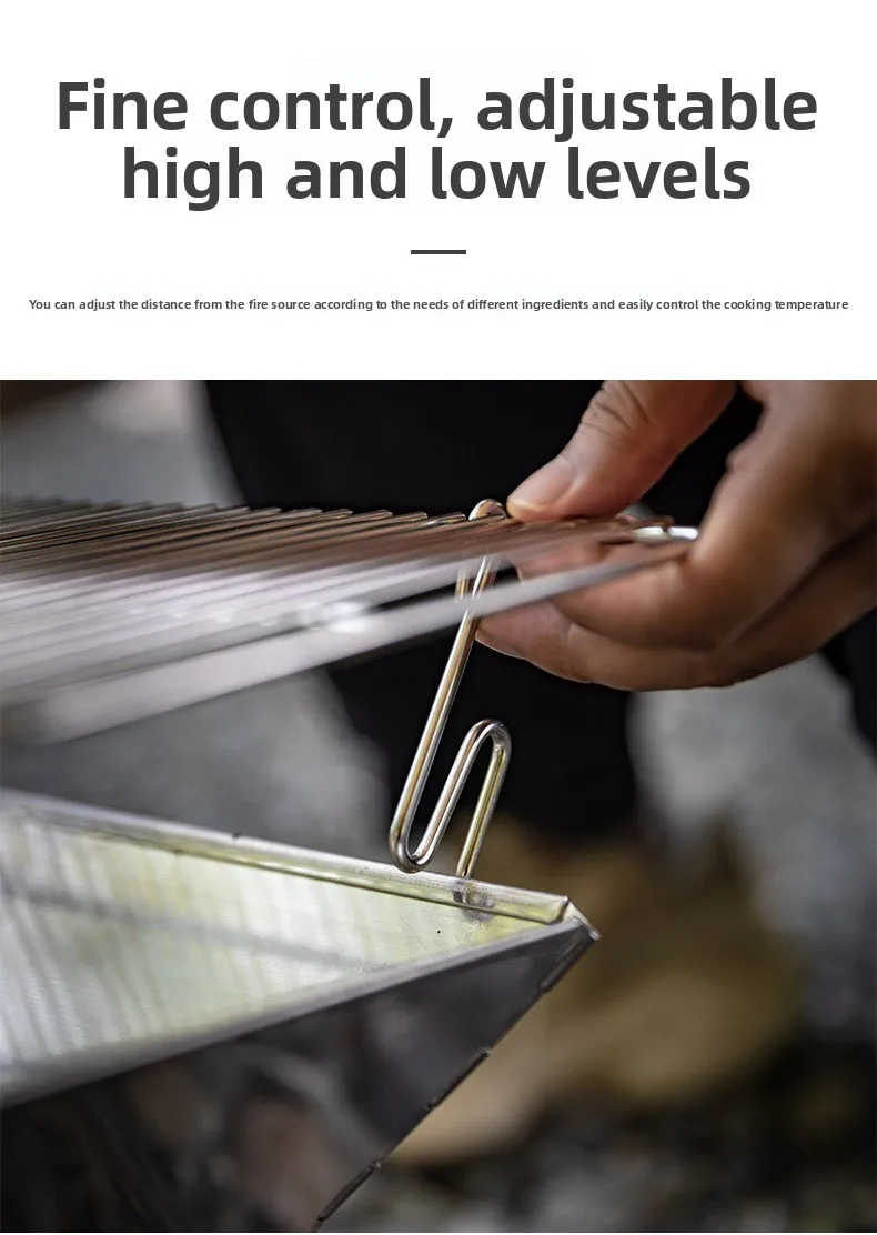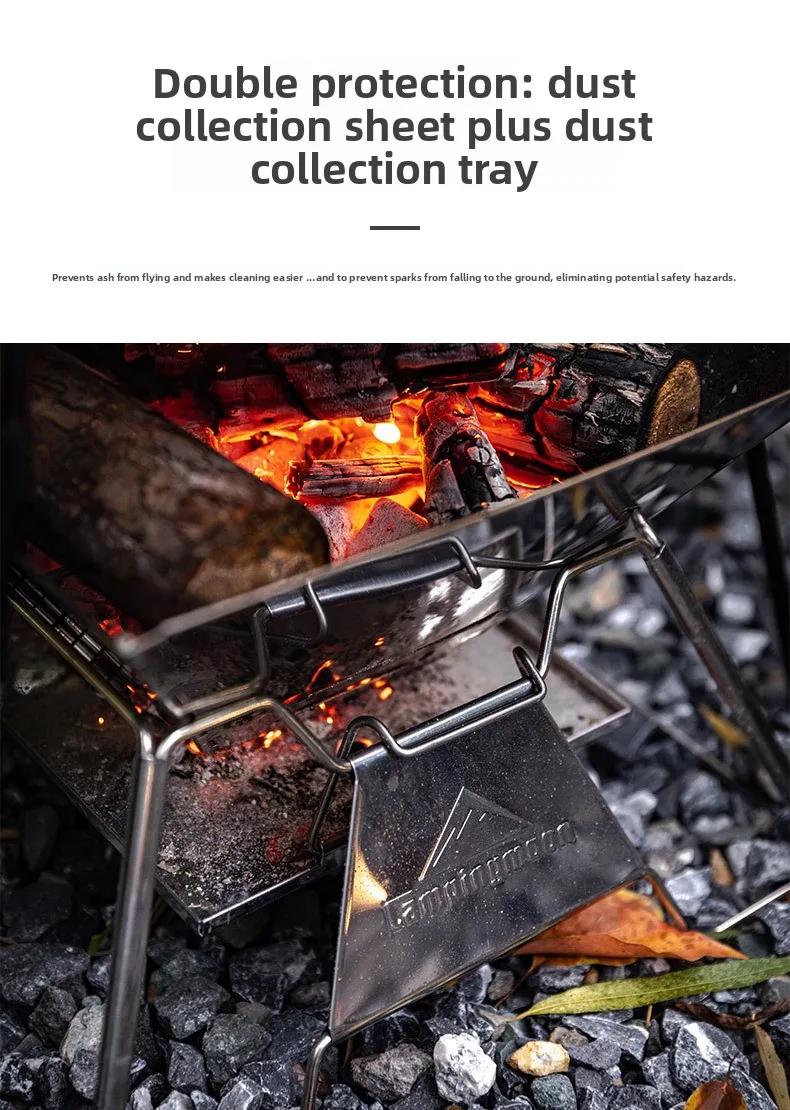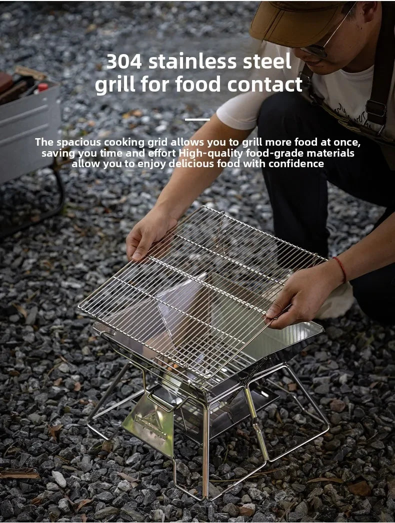 Outdoor fire stove, wood stove, barbecue stove, suitable for outdoor camping picnic cooking, barbecue. Made of stainless steel, very durable, folding design, equipped with clutch bag.
