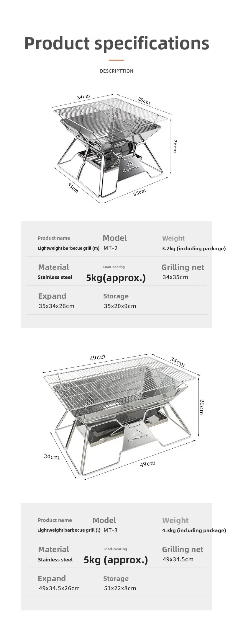 Steel foldable portable barbecue grill MT-3 MT-2 outdoor camping picnic set camping barbecue grill fire pit firewood stove