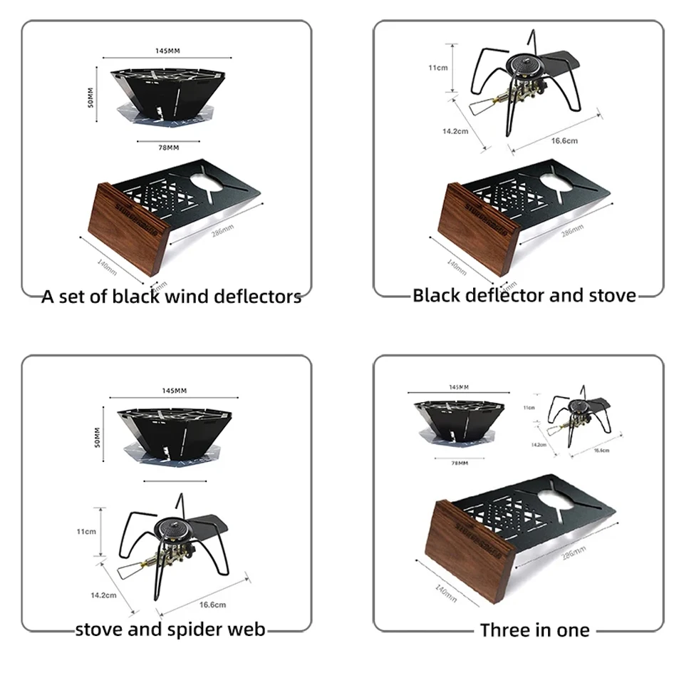 The wind shield has functions such as maintaining centralized heating of internal flames and saving time, such as shortening thetime required for outdoor water heating,Improving efficiency suitable for various occasions such as outdoor, indoor, courtyard, etc