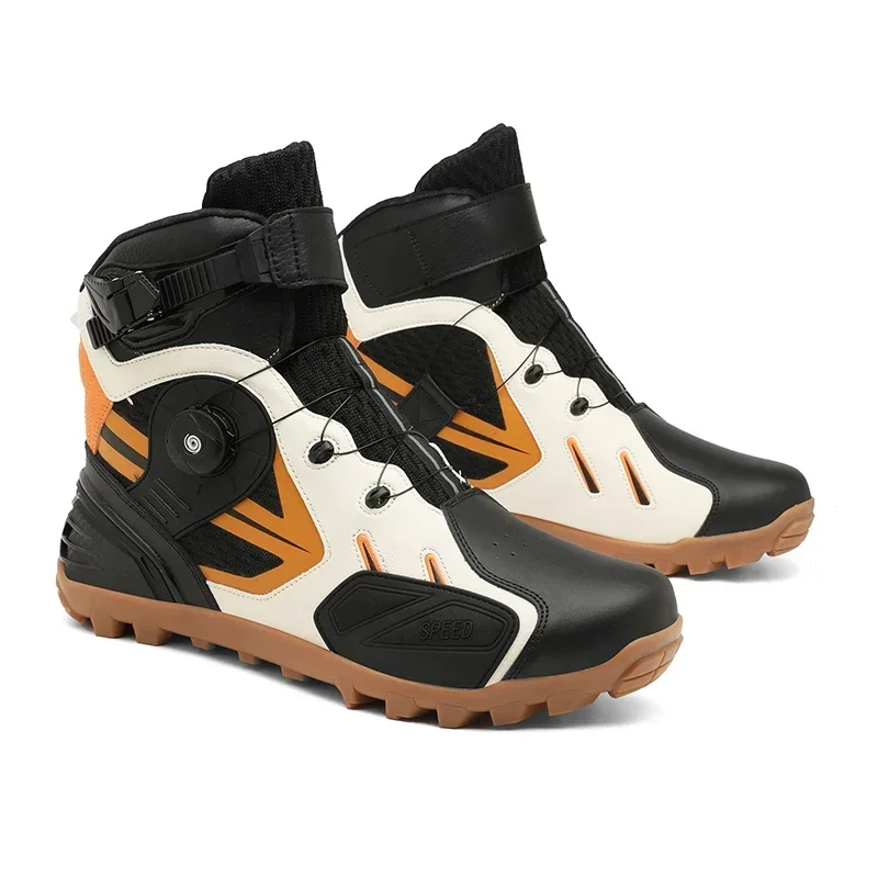 Summer Retro Mountain Off-road Motorcycle Riding Boots Men Motorbike Motocross Cycling Shoes With Gear Shift Pad Rubber Sole
